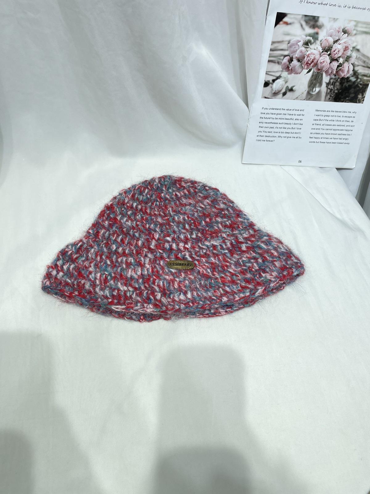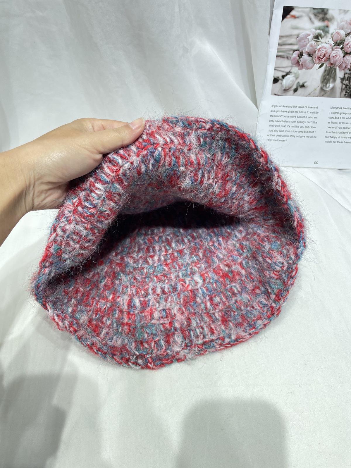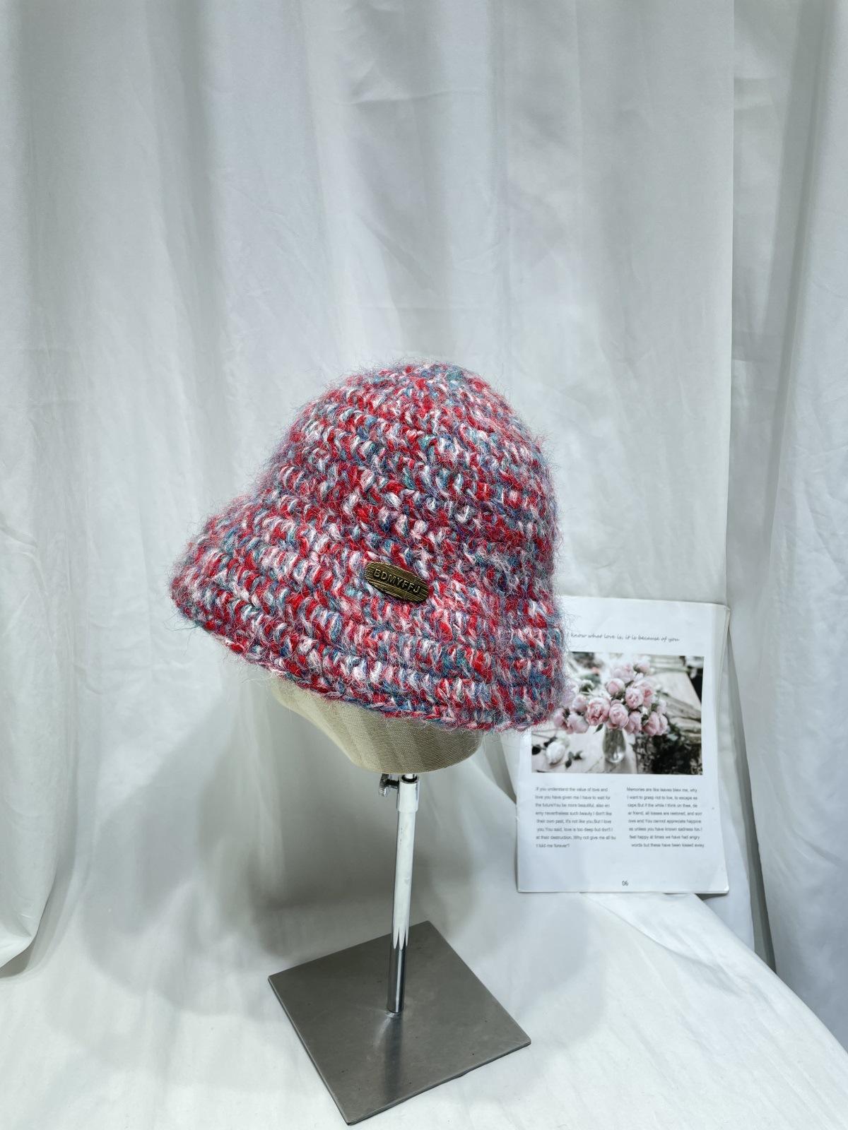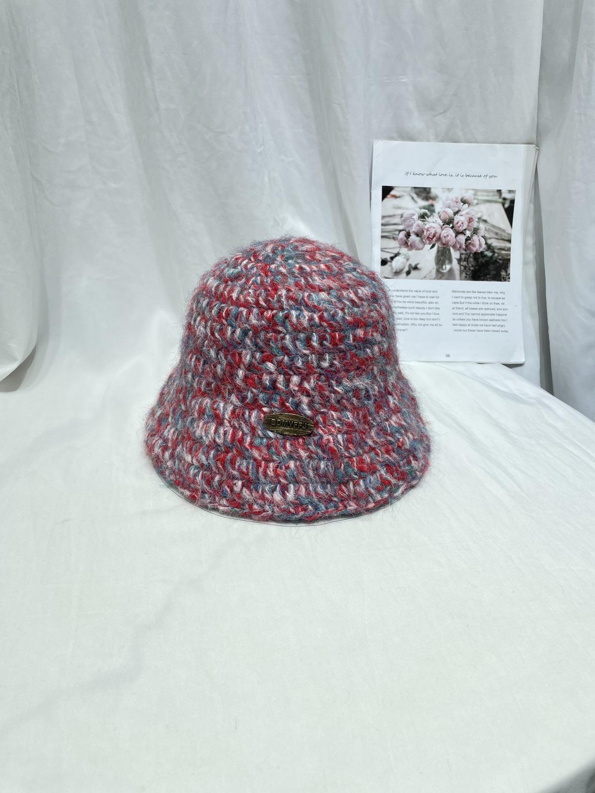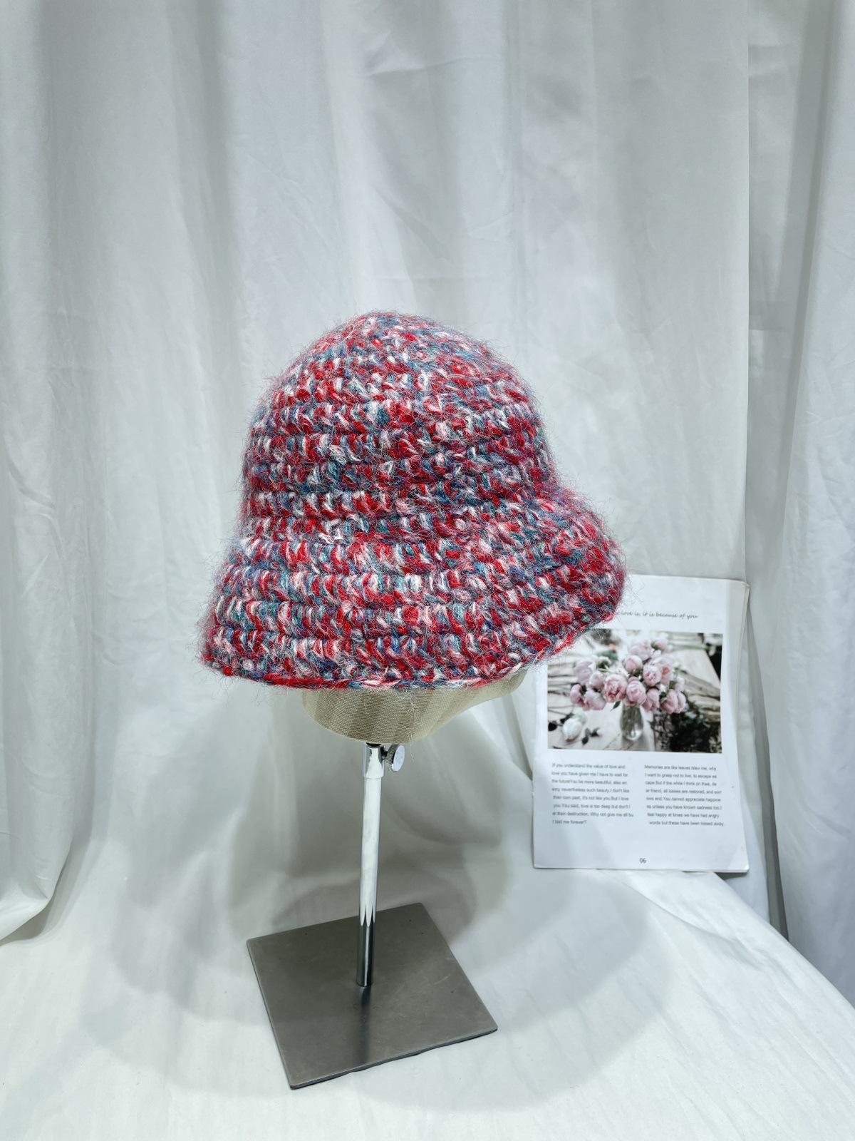Chapéu de pescador de malha de metal de cor mista da moda coreana para mulheres, chapéu de balde quente para outono e inverno, rosto pequeno e casual