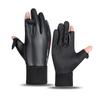 Luvas quentes de couro de inverno forradas de lã homens antiderrapantes à prova de dedos à prova de vento à prova d'água Touch Screen à prova de fotos à prova de frio Flip-Cover Luvas