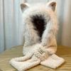 Chapéu cachecol raposa orelhas transfronteiriço chapéu tudo-em-um inverno feminino fofo animal de pelúcia mais cachecol conjunto de duas peças
