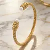 Pulseira de aço inoxidável torcida com pérola de abertura design de nicho feminino simples europeu e americano pulseira de arame de aço joias atacado