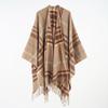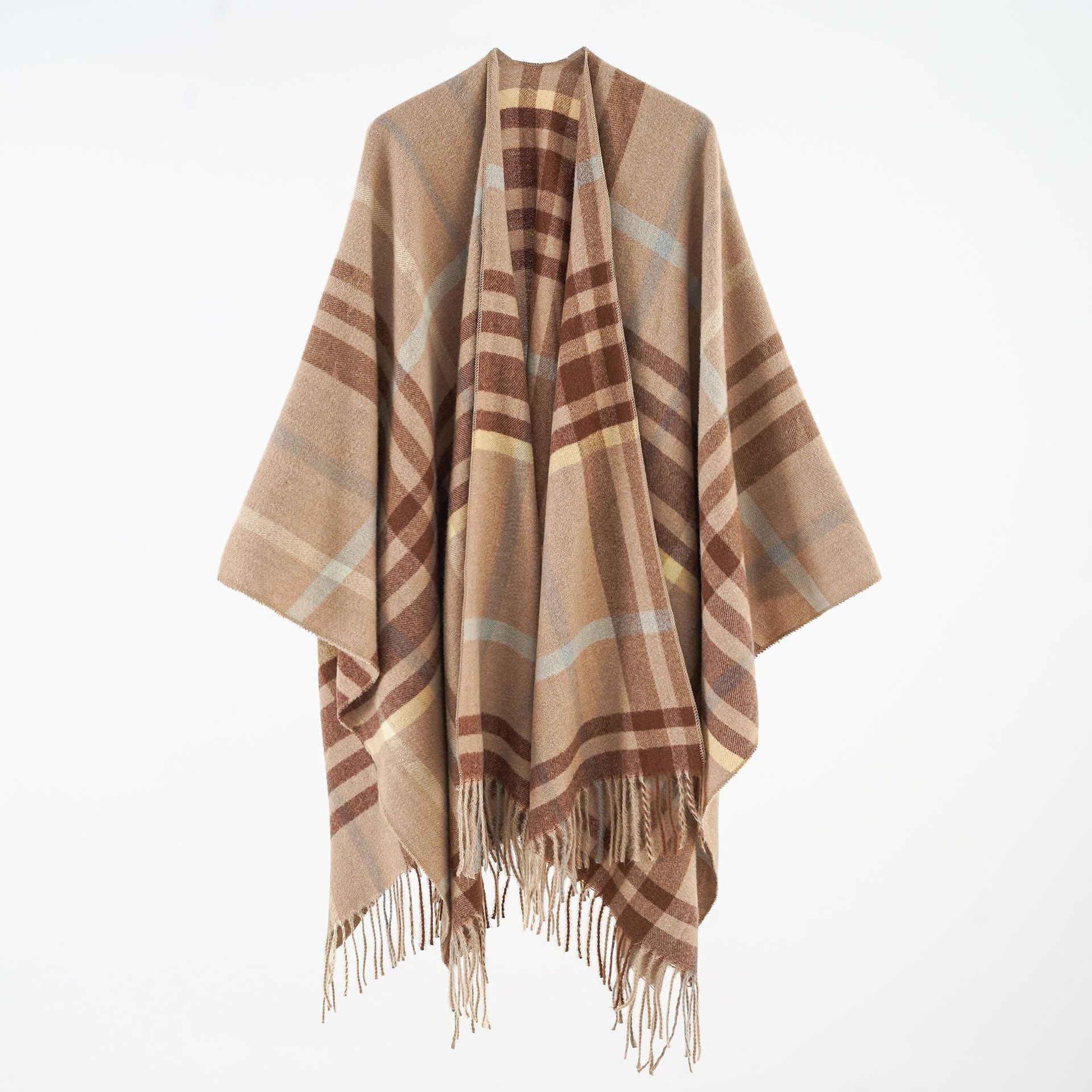 • Novos produtos da Amazon, xale xadrez com borlas, moda europeia e americana, capa quente com divisão avançada para mulheres