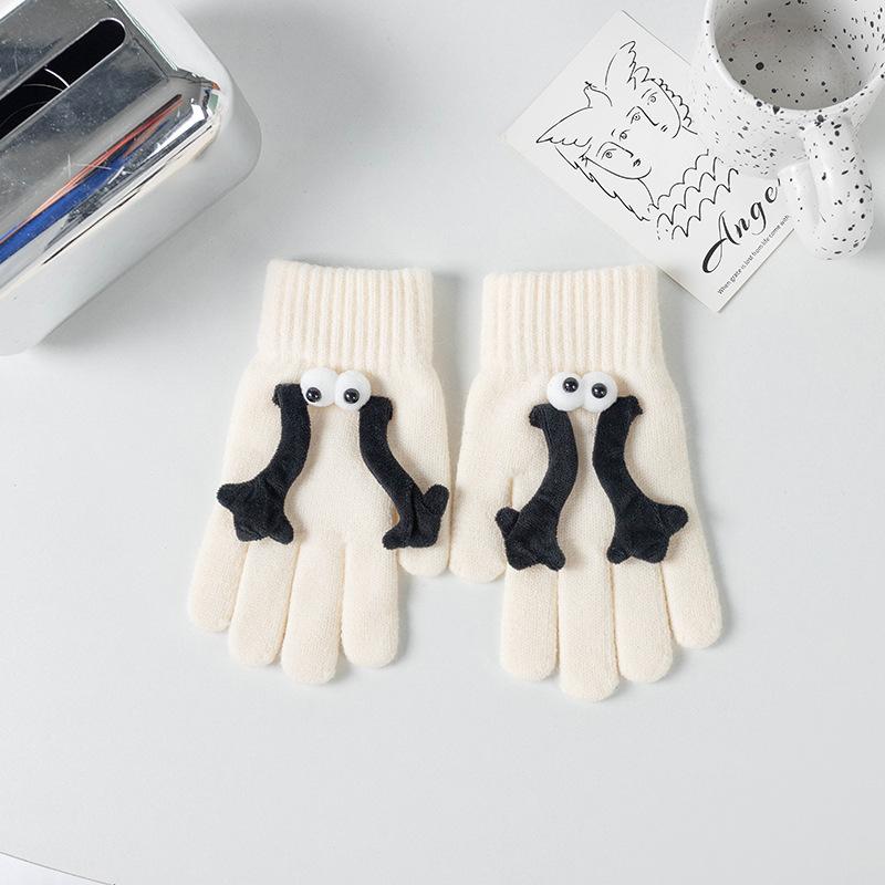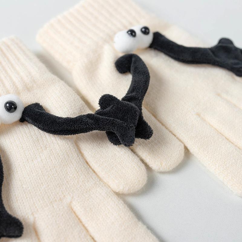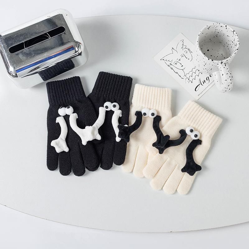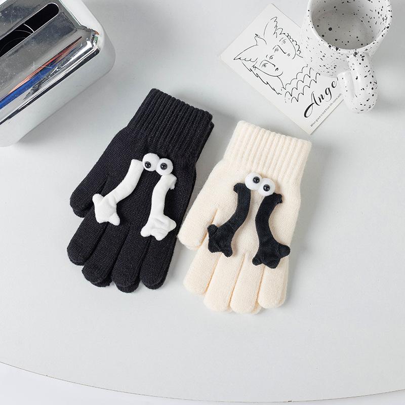 Luvas Magnéticas de Mãos Dadas Abertura nos Dedos Luvas Decorativas Combinação de Cores Preto e Branco Hip-hop Engraçado Luvas Interessantes
