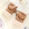 Luvas quentes de camurça femininas estudantes outono e inverno fofo forrado de lã espessado pelúcia flip escritório tela sensível ao toque meio dedo