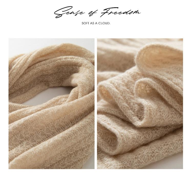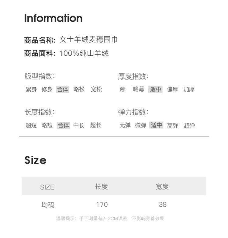 Cachecol de Trigo Jacquard 100% Caxemira Outono e Inverno Novo Feminino Proteção de Pescoço Engrossado Malha Quente Cor Sólida Cachecol