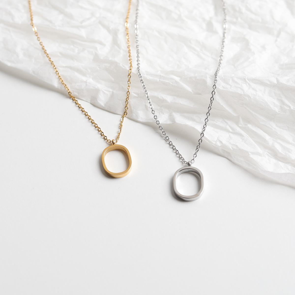 Colar de aço titânio com pingente oval simples europeu e americano, design de nicho feminino, corrente de clavícula de estilo frio e leve de alta qualidade
