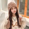 Chapéu fofo de malha listrado combinando com cores, chapéu feminino de outono e inverno, espesso, quente, proteção para orelhas, alça, chapéu Lei Feng à prova de frio