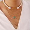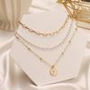 Europa e Estados Unidos cross-border cabeça moeda pingente colar de pérolas moda multi-camadas colar feminino design clavícula corrente