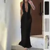 Primavera 2026 Nova Roupa Feminina Estilo Europeu e Americano Transfronteiriço Vestido Elegante e Sexy Costas Nuas Gola Halter Vestido Longo