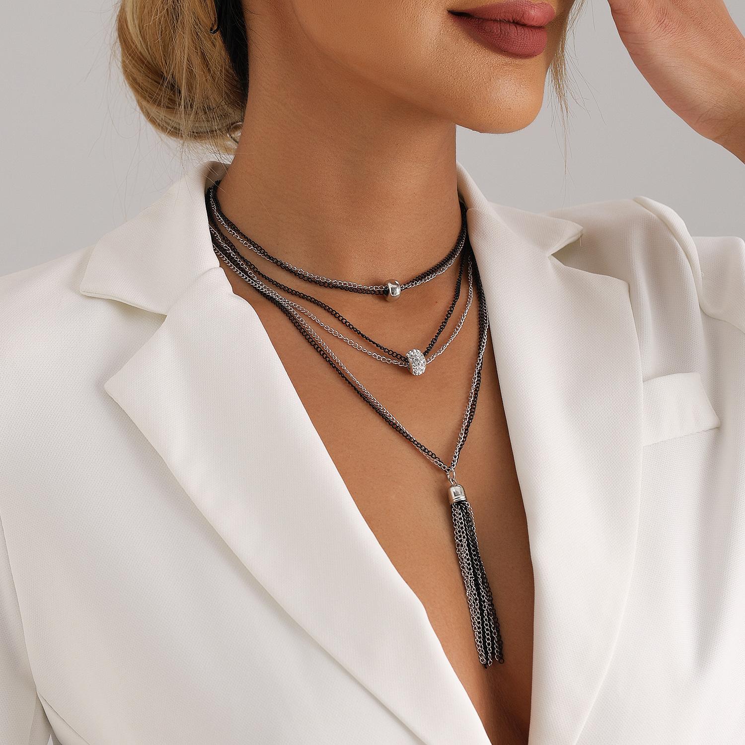 Europeu e americano cross-border jóias retro frio longo borla multi-camadas colar feminino luz luxo moda diamante cristal clavícula corrente