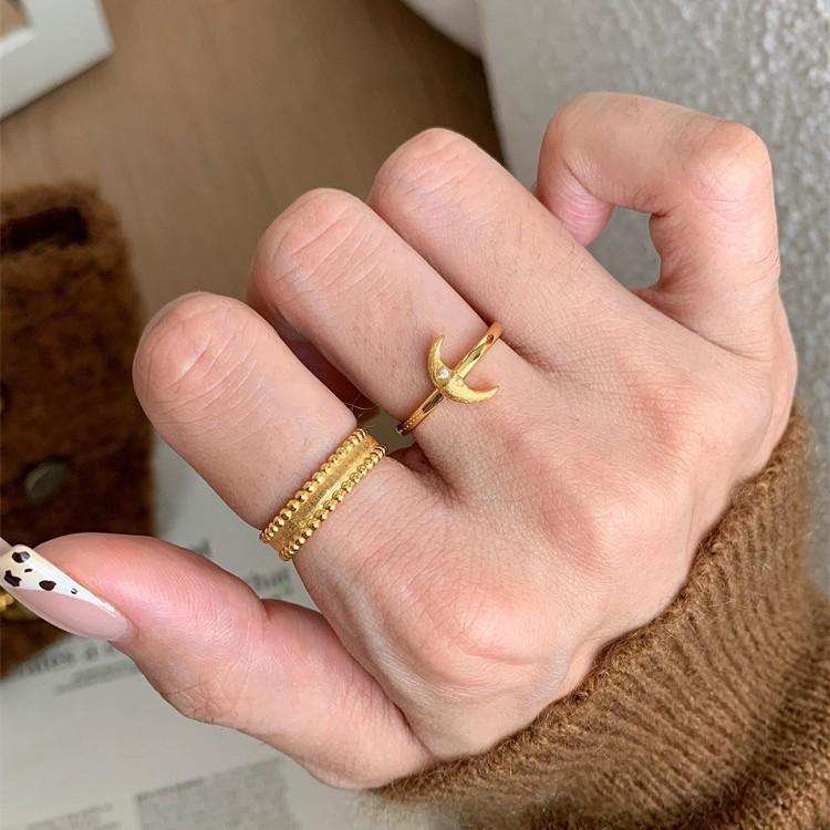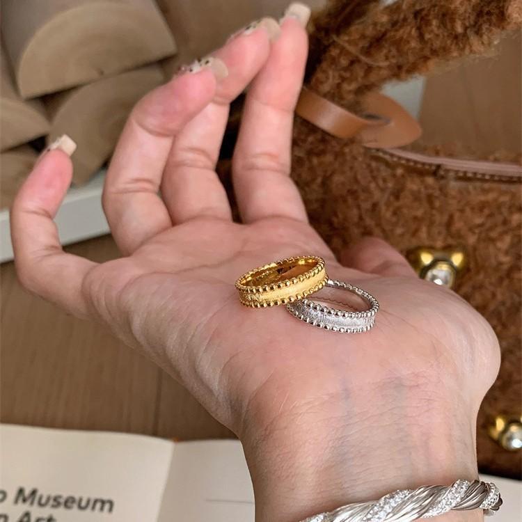 Anel Dourado Médio Borda de Miçangas Antigas Feminino Retrô Nicho Senso de Design Anel de Dedo Exquisito Alto Valor de Cor Anel de Cauda Aberta Anel