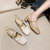Sandálias femininas estilo fada, salto grosso, bege, saia nova de verão, estilo francês, bico quadrado, sapatos mary jane
