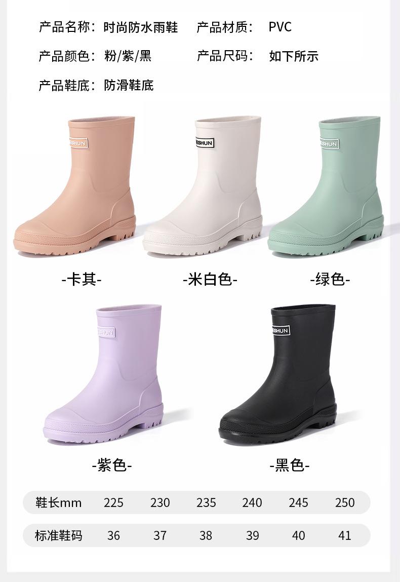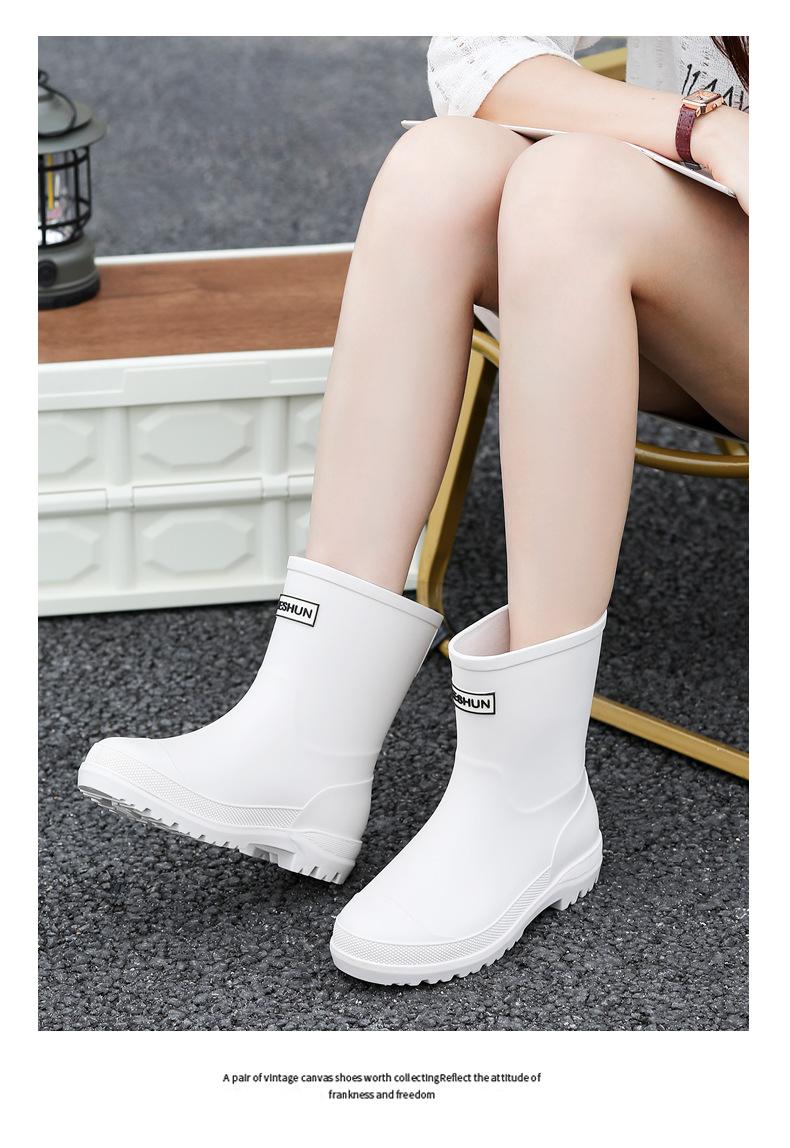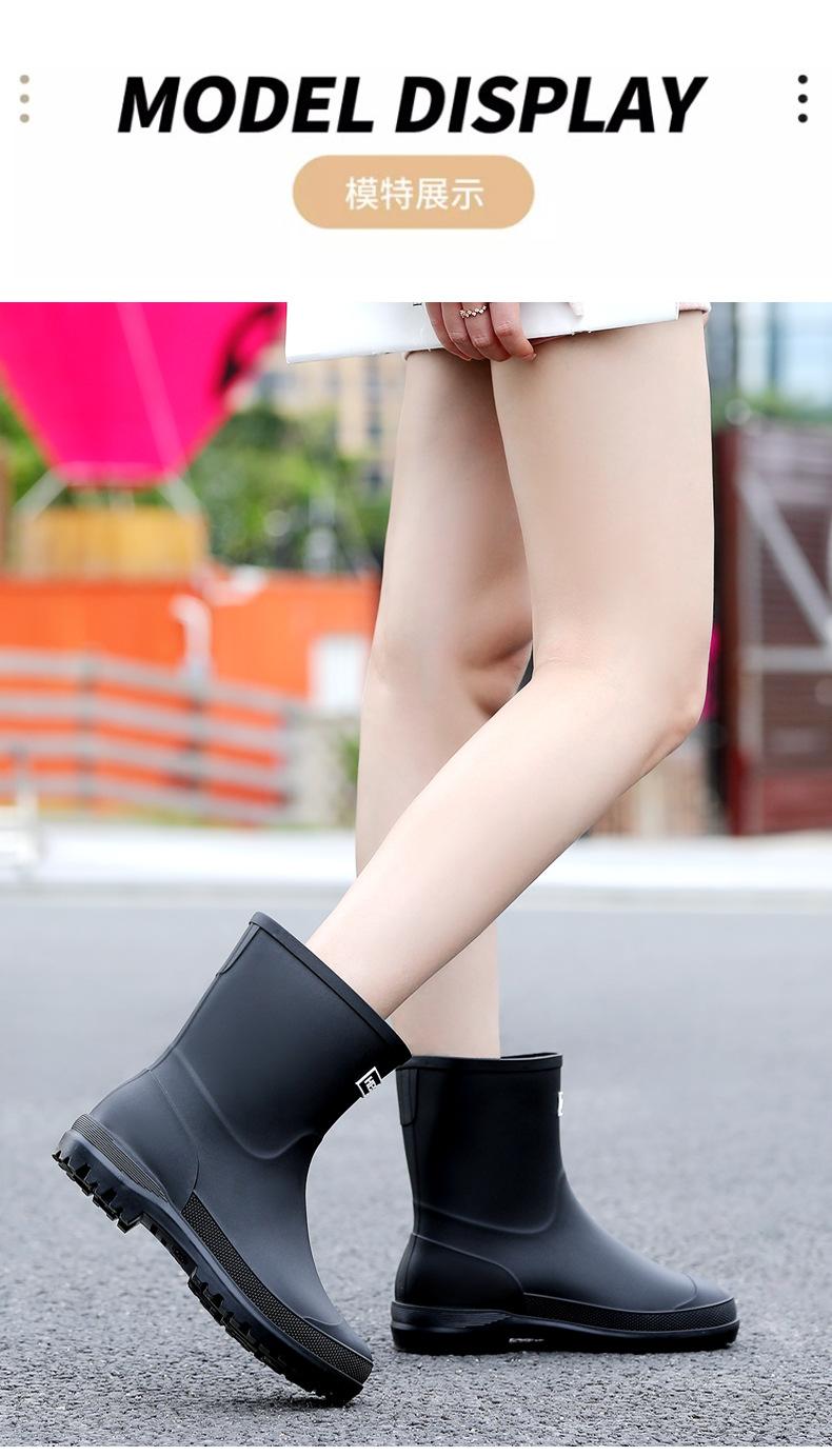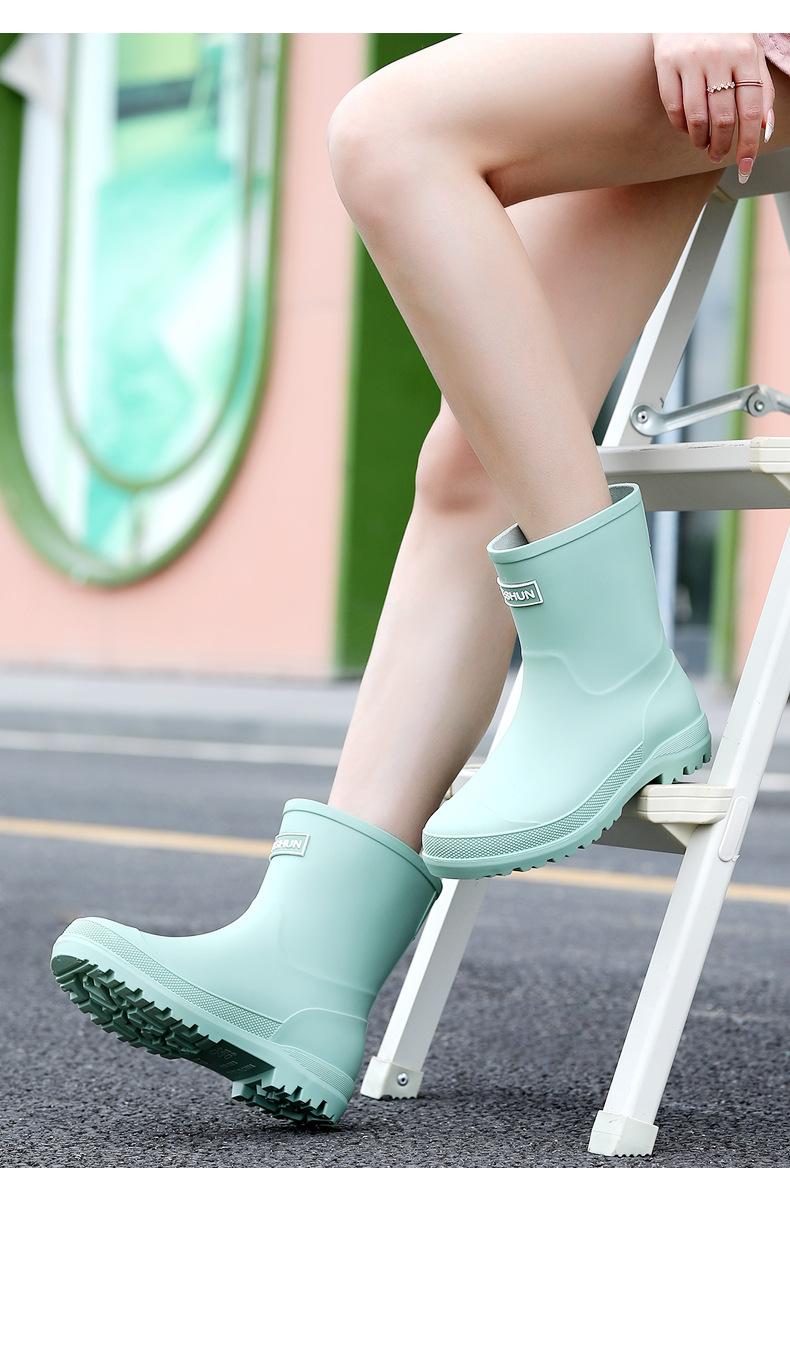 2025 Nova Moda Transfronteiriça Botas de Chuva de Cano Médio para Mulheres, Sapatos de Água Antiderrapantes para Exterior, Sapatos de Borracha Impermeáveis Leves e Sobrebotas Atacado