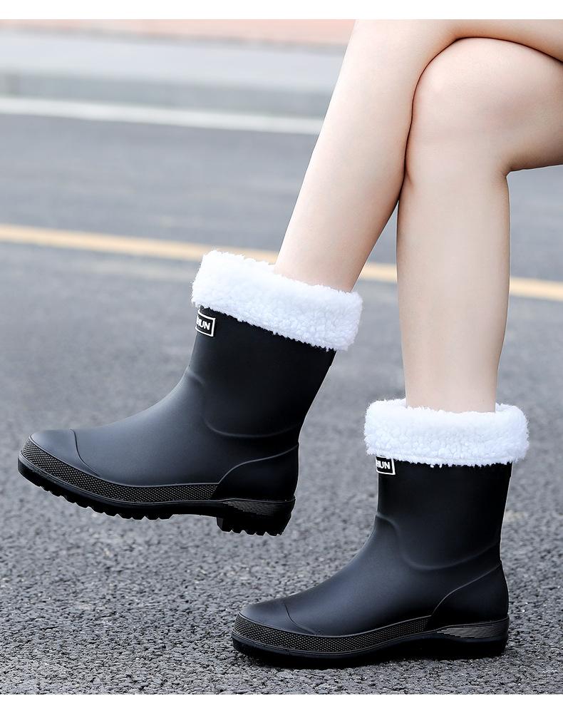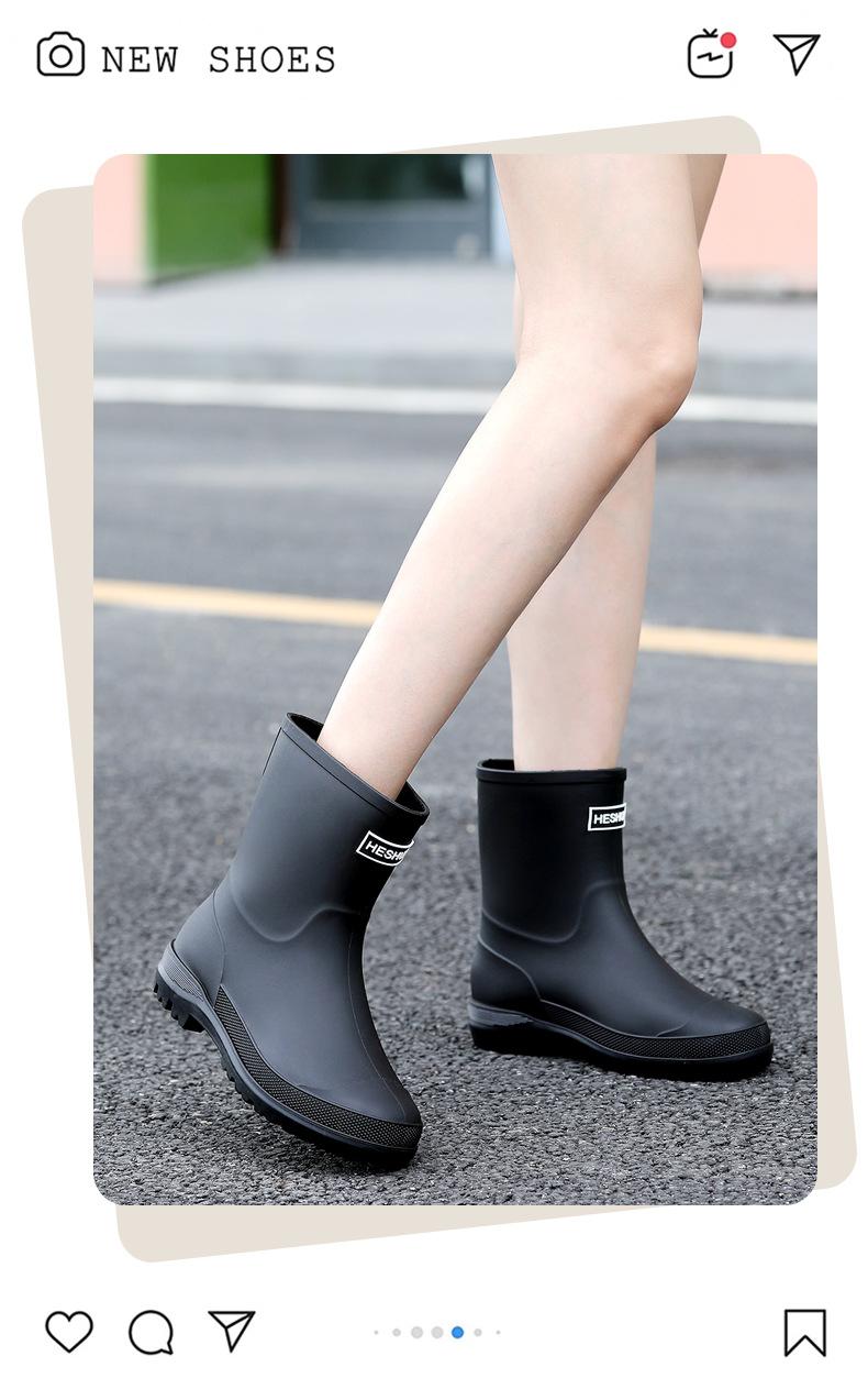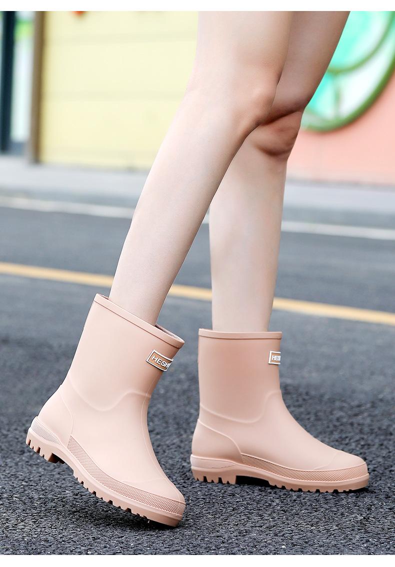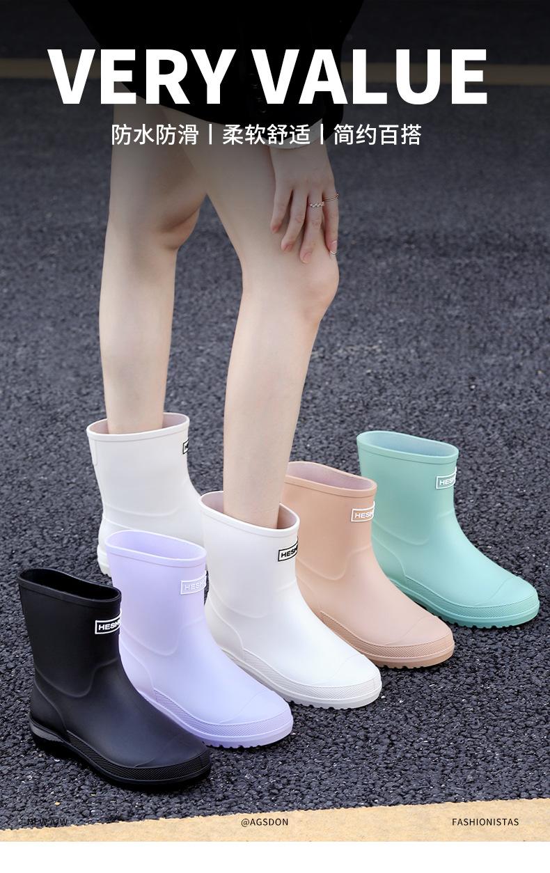 2025 Nova Moda Transfronteiriça Botas de Chuva de Cano Médio para Mulheres, Sapatos de Água Antiderrapantes para Exterior, Sapatos de Borracha Impermeáveis Leves e Sobrebotas Atacado