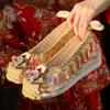 Sapatos Hanfu Antigos Sapatos de Noiva Sapatos de Casamento Chinês Borla Vermelha Xiuhe Sapatos de Casamento Altura Interna Estilo Étnico Sapatos Bordados