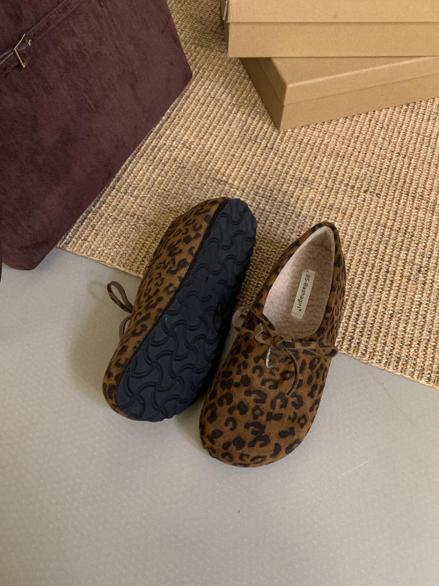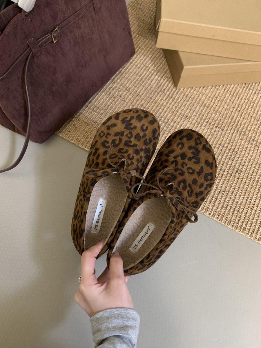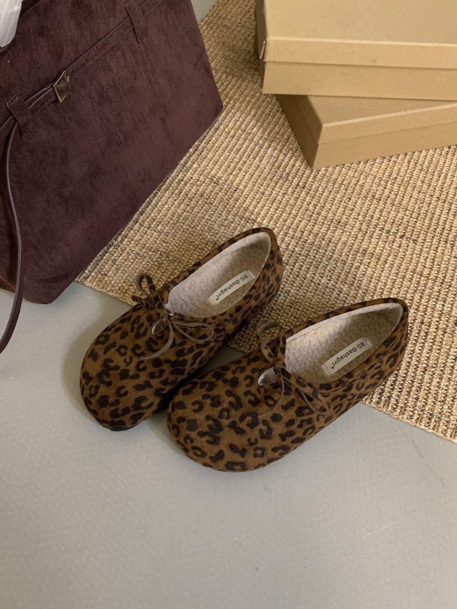 Estampa de leopardo francesa vintage bico redondo sapatos de camada única para todos os tipos de outono e inverno novos sapatos buccan de bico grande sapatos baixos casuais