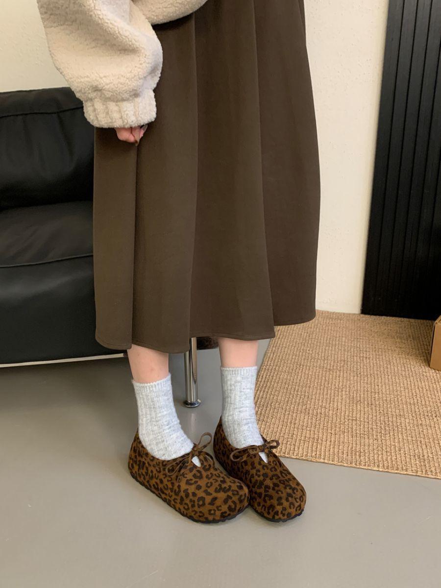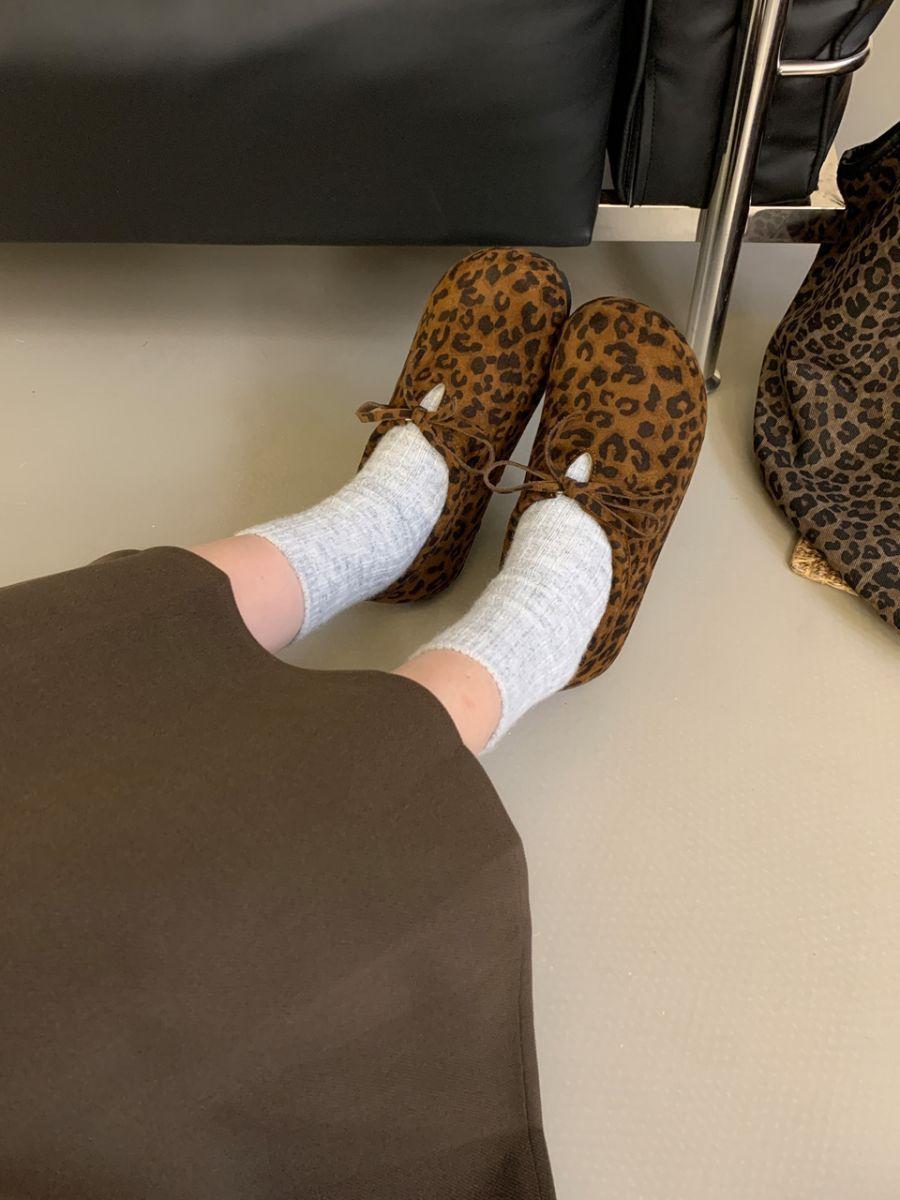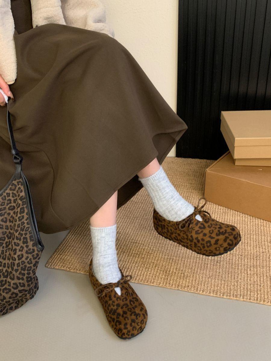 Estampa de leopardo francesa vintage bico redondo sapatos de camada única para todos os tipos de outono e inverno novos sapatos buccan de bico grande sapatos baixos casuais
