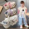Tênis para meninas da moda, tênis de corrida infantil de malha respirável, primavera e outono, médio e grande, sapatos de papai para meninas da moda, 2024