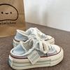 Two Wear Salto Grosso Borla Beggar Canvas Shoes 2024 Primavera e Outono Estudante Explosões Canvas Shoes para Mulheres