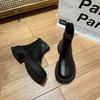 Botas de cano médio de celebridades populares retrô de fundo grosso emagrecedoras para mulheres 2023 novas botas pequenas de outono estilo britânico combinando