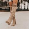 Comércio exterior Novo estilo 2024 Outono e inverno Novas botas da moda acima do joelho Europeias e americanas Biqueira redonda Salto médio Salto grosso Botas altas Tamanho grande Botas femininas