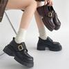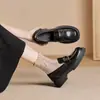Sapatos de Couro Pequenos de Bico Redondo Plus Veludo Retrô Preto de Sola Grossa para Mulheres 2025 Novo Outono e Inverno Francês Salto Grosso Mocassins Estilo Britânico