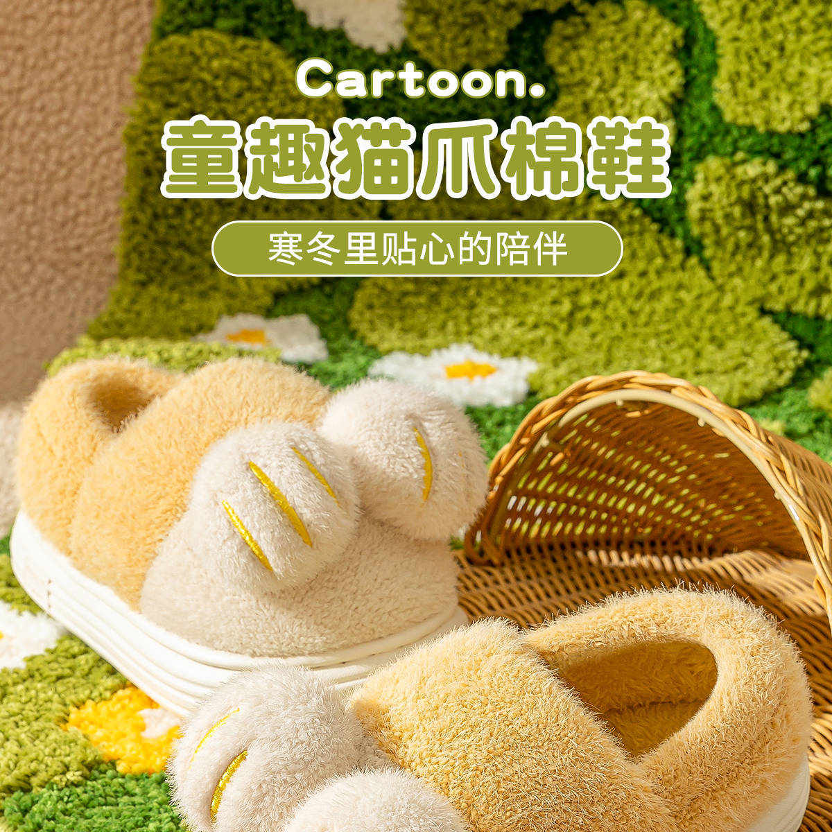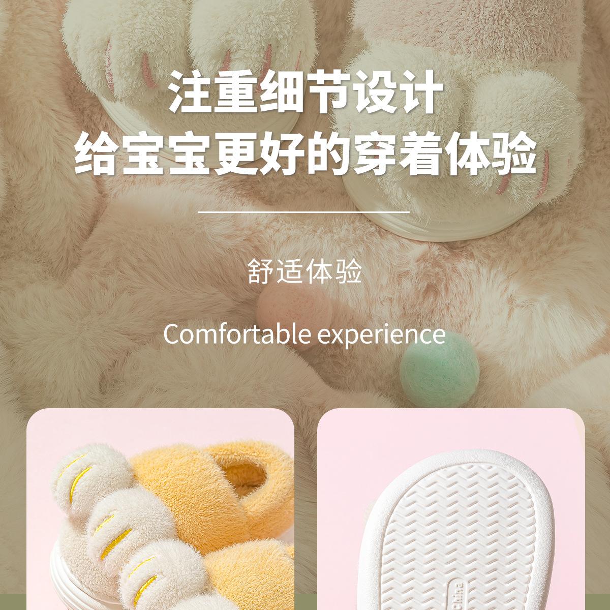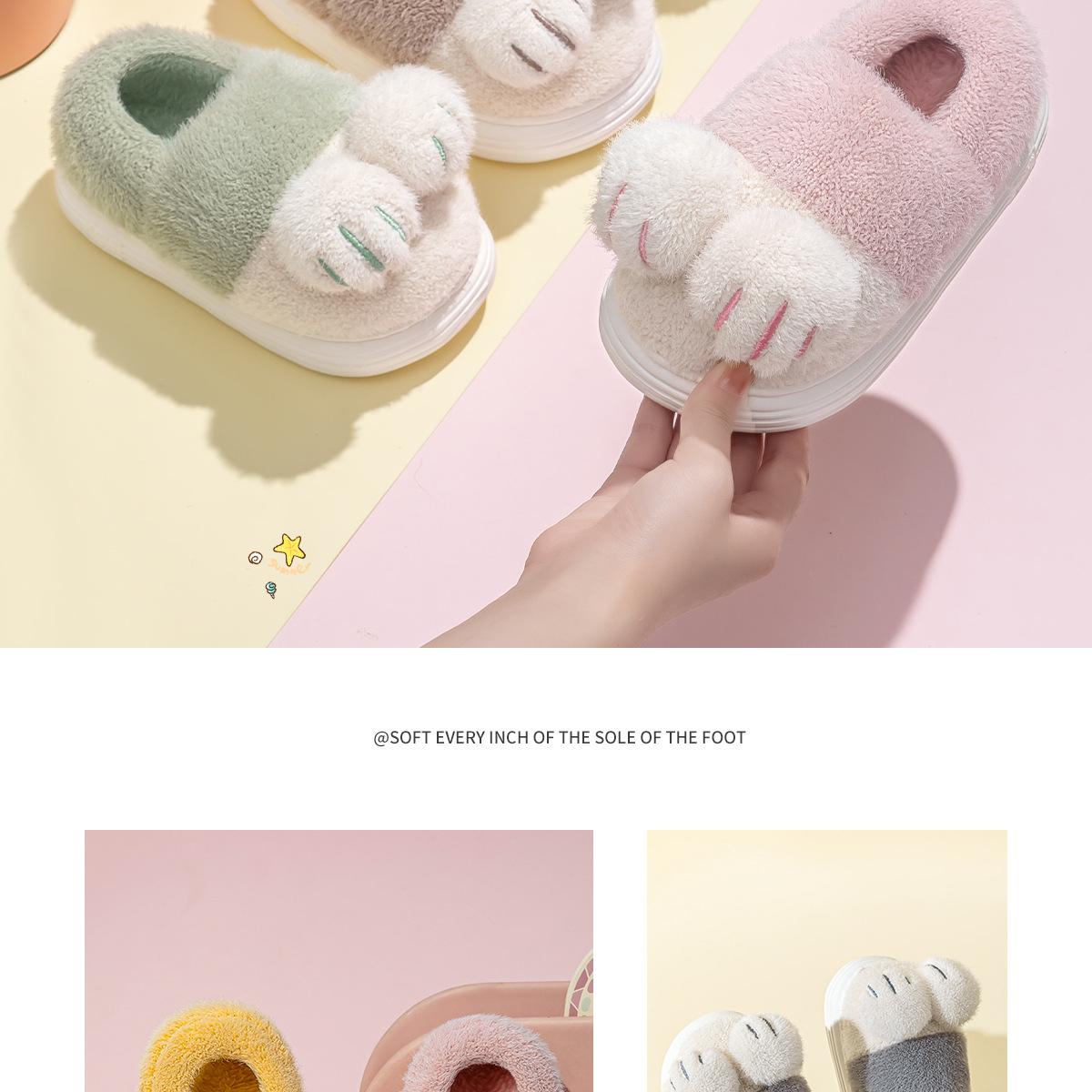 Pantufas de Algodão Infantil Pata de Gato Lidani para Meninas, Novo Estilo Outono e Inverno 2025, Pantufas Peludas para Meninas de Casa Pai-Filho com Cobertura de Calcanhar