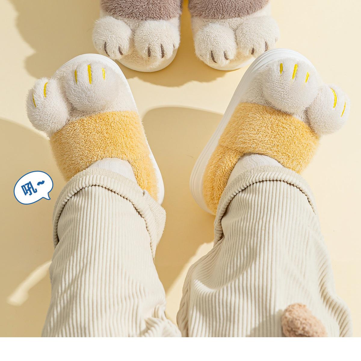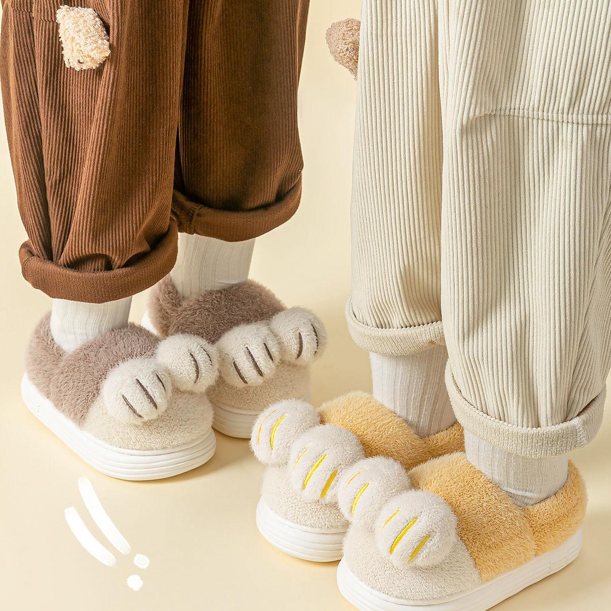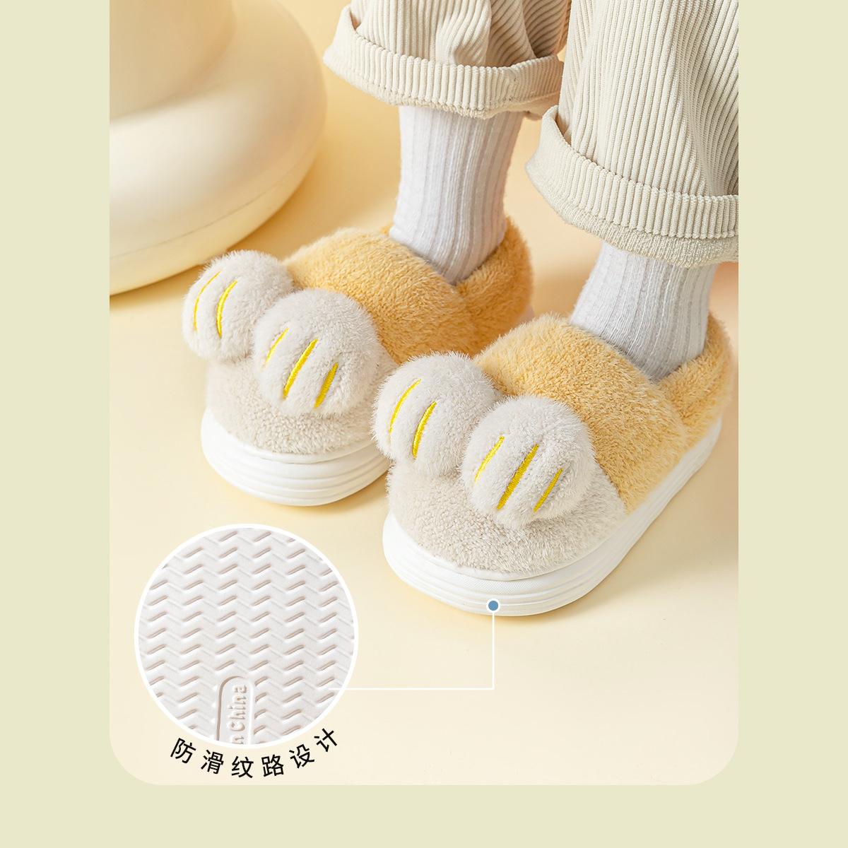 Pantufas de Algodão Infantil Pata de Gato Lidani para Meninas, Novo Estilo Outono e Inverno 2025, Pantufas Peludas para Meninas de Casa Pai-Filho com Cobertura de Calcanhar