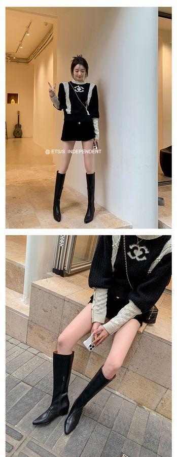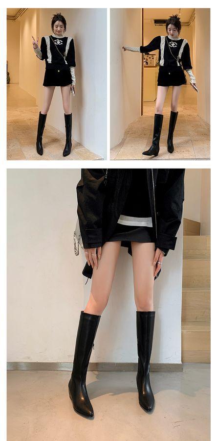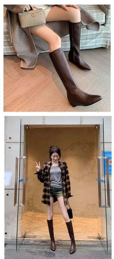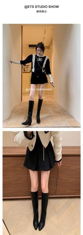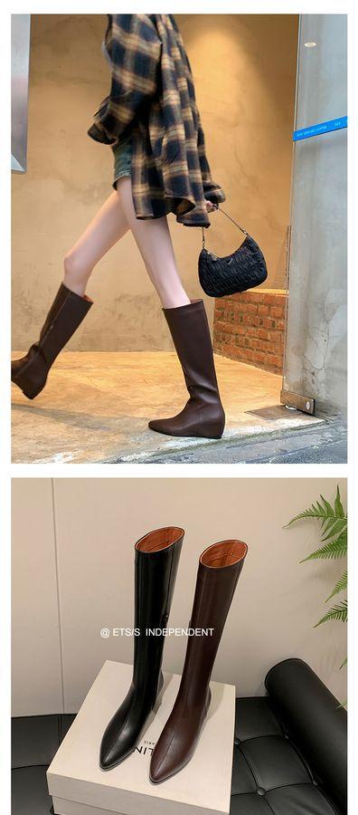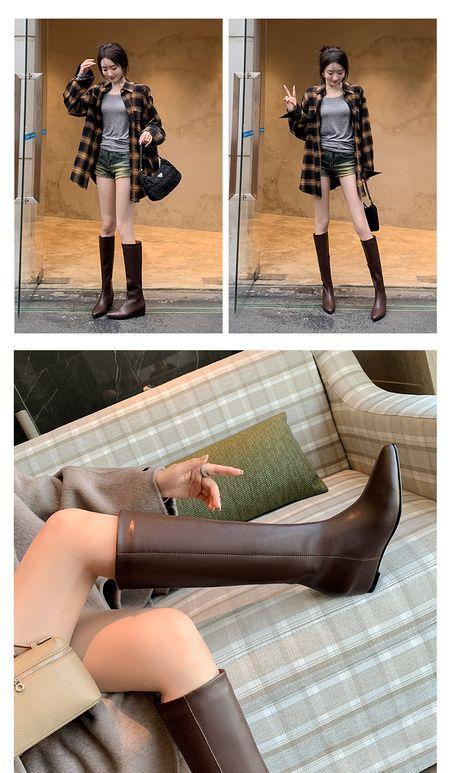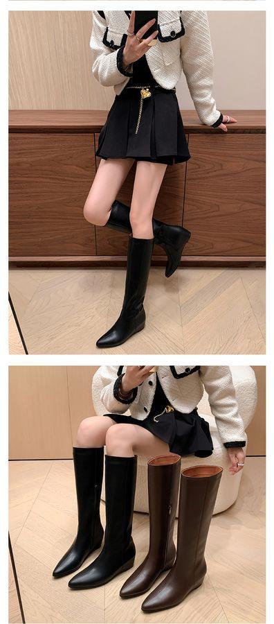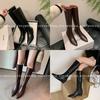 Botas de salto alto estilo inglês de 5 cm, salto alto, cunha, femininas, inverno 2024, inverno, Maillard, pequenas botas altas, cavaleiros, femininas