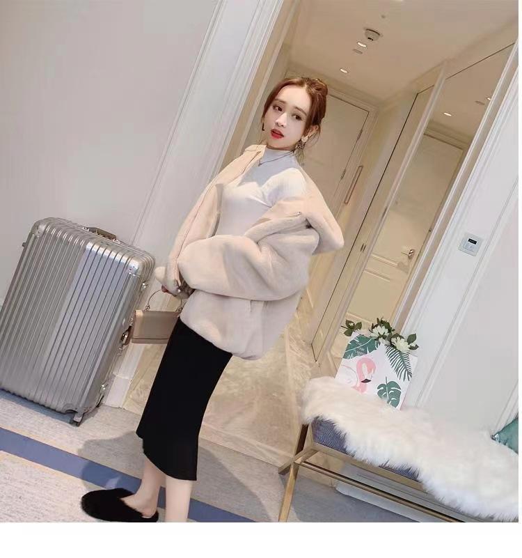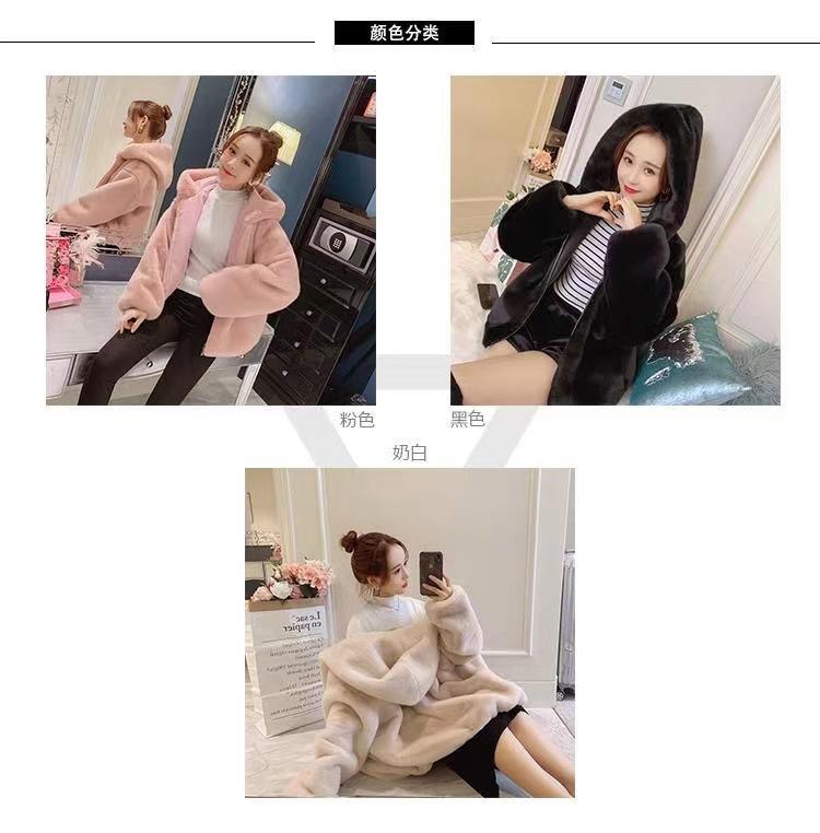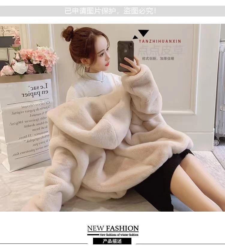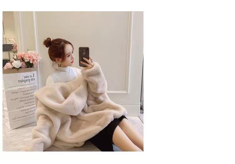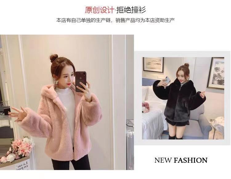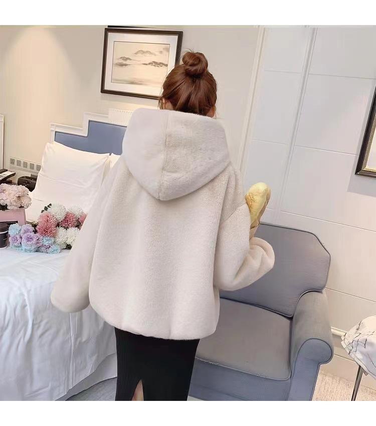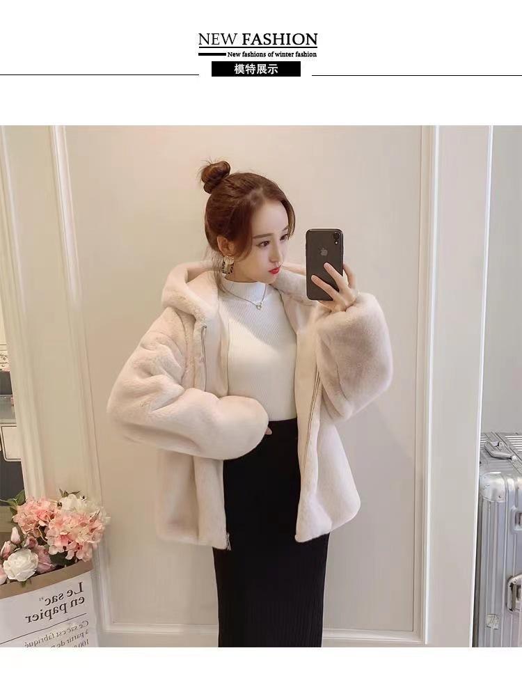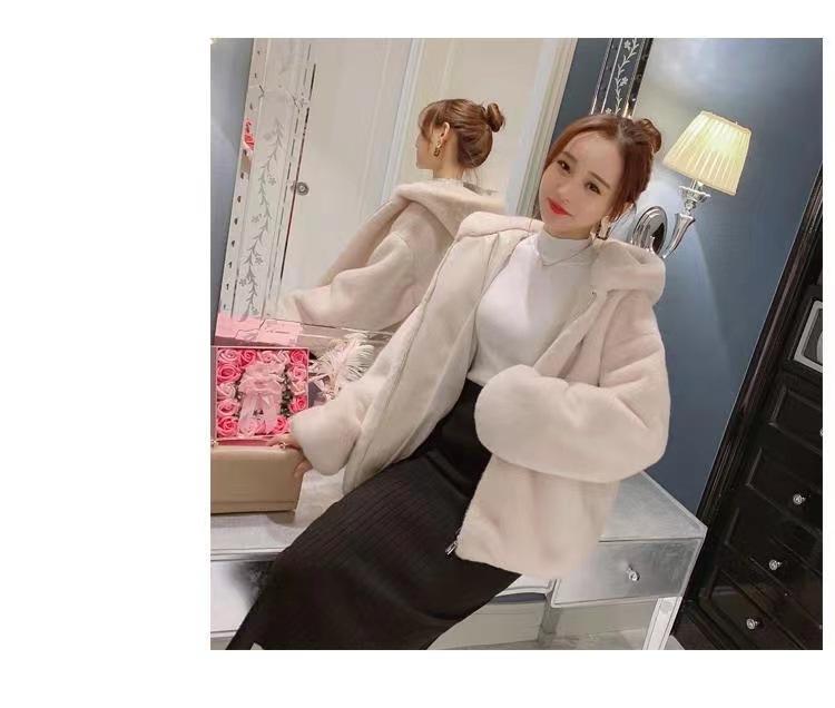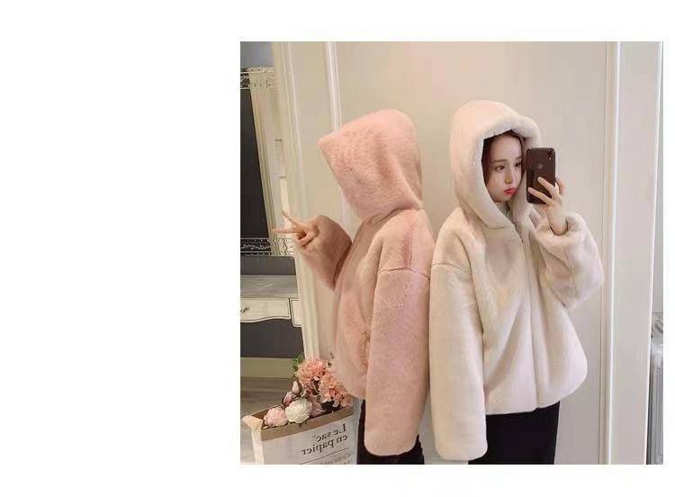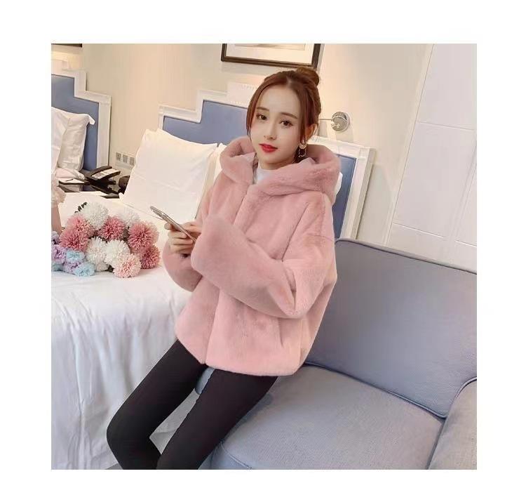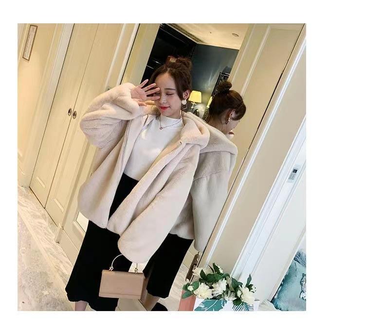 Casaco de pele feminino 2024 novo outono e inverno casaco engrossado com capuz imitação coelho vison pelúcia solto casaco curto feminino