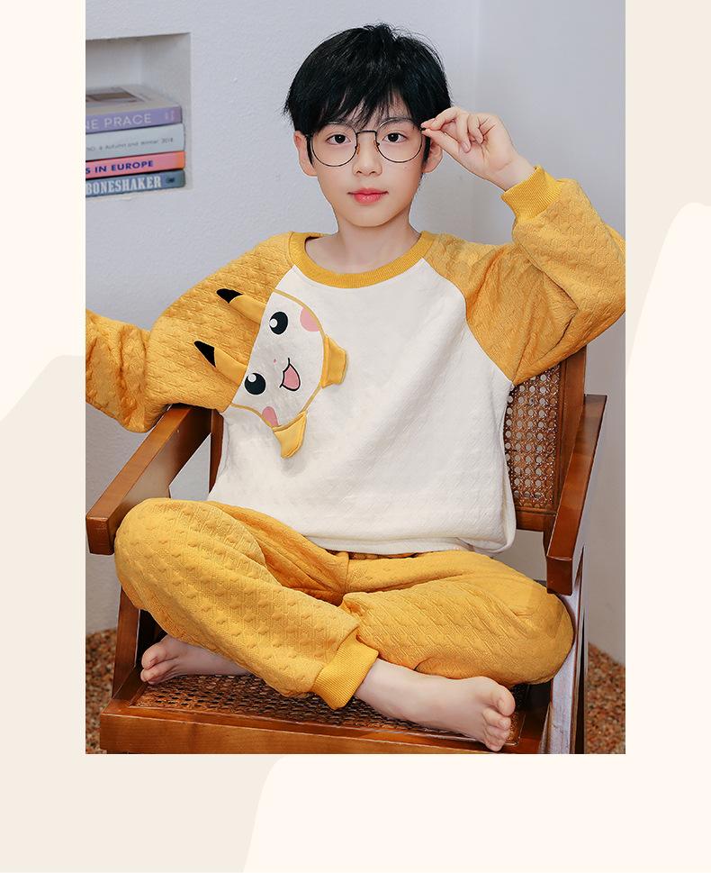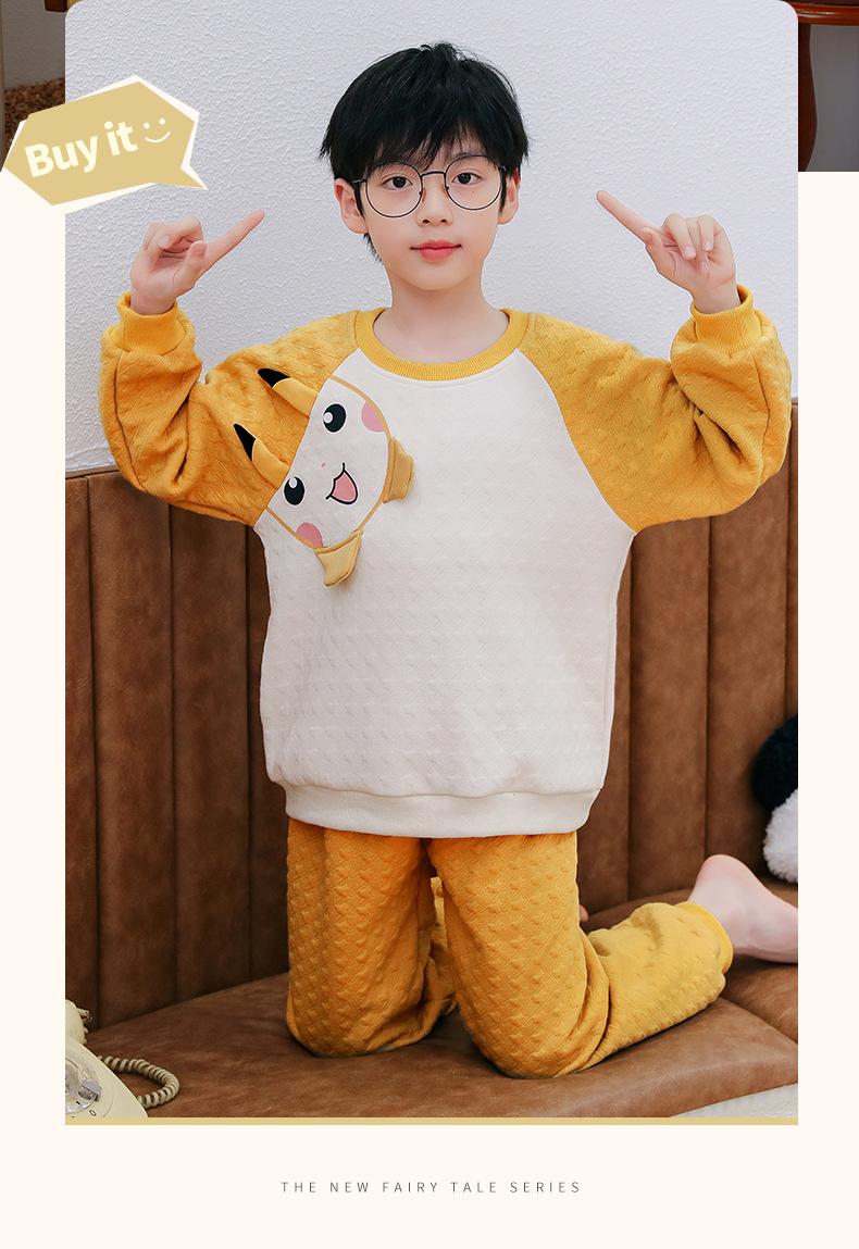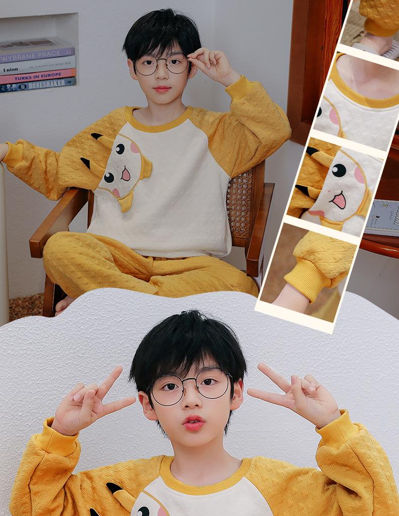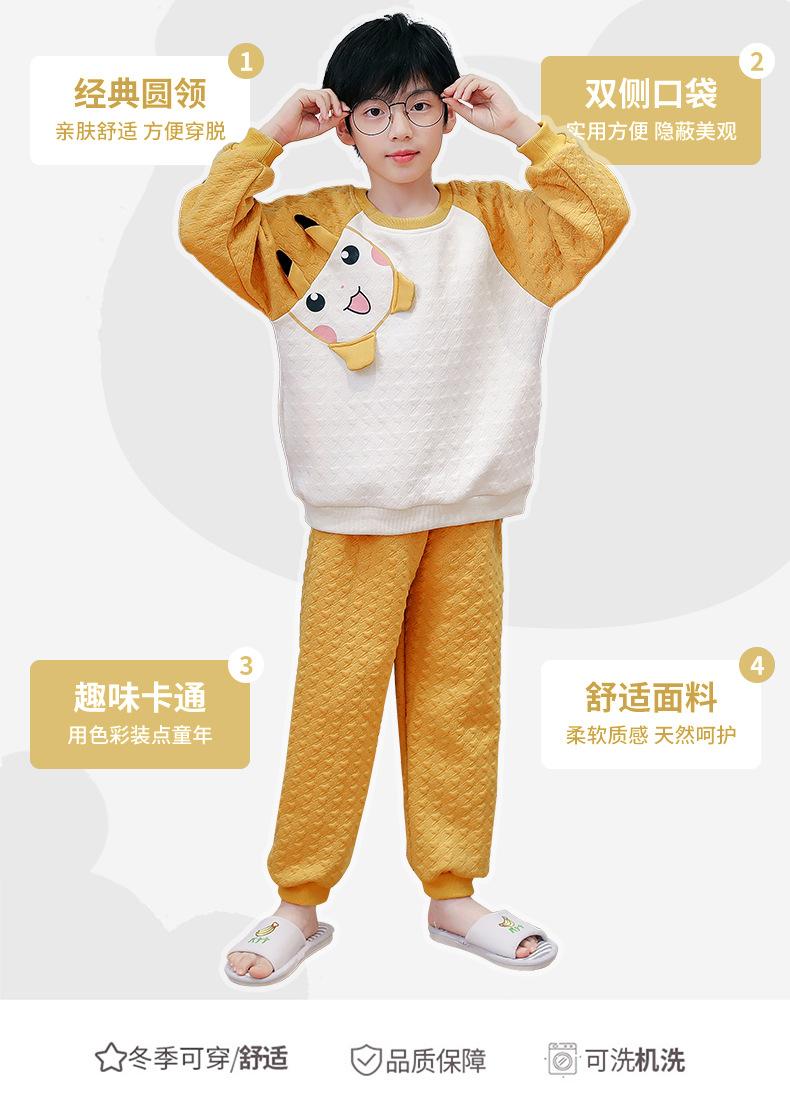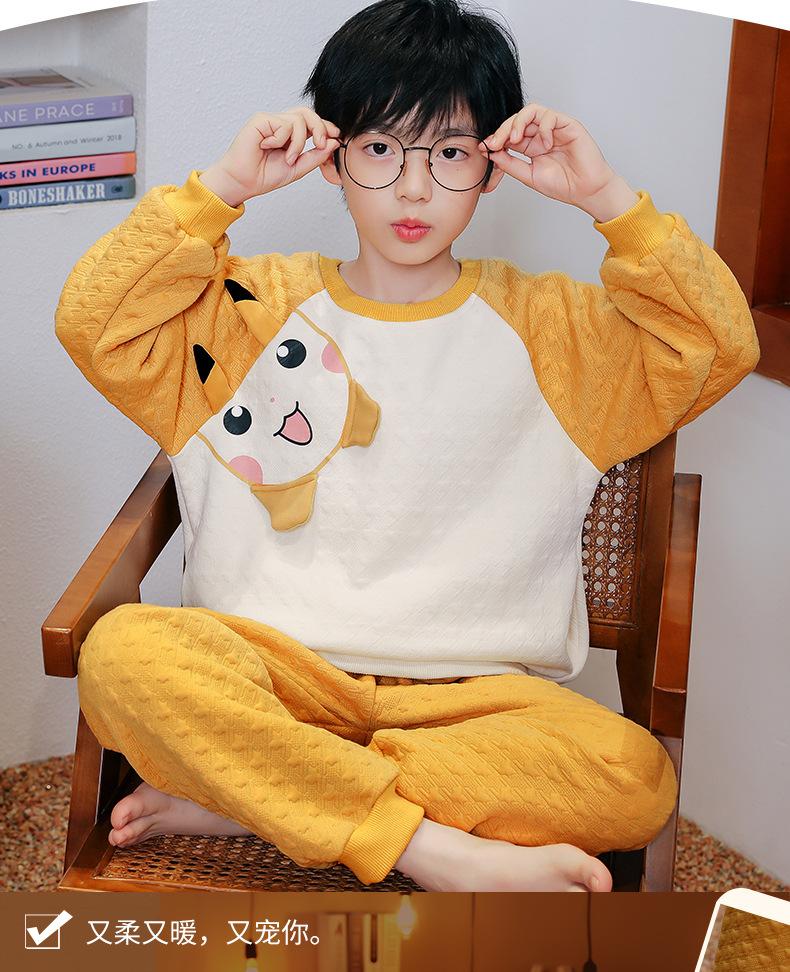 Outono e inverno infantil algodão camada de ar meninos pijamas terno sanduíche engrossado casual desenho animado pullover meninos homewear