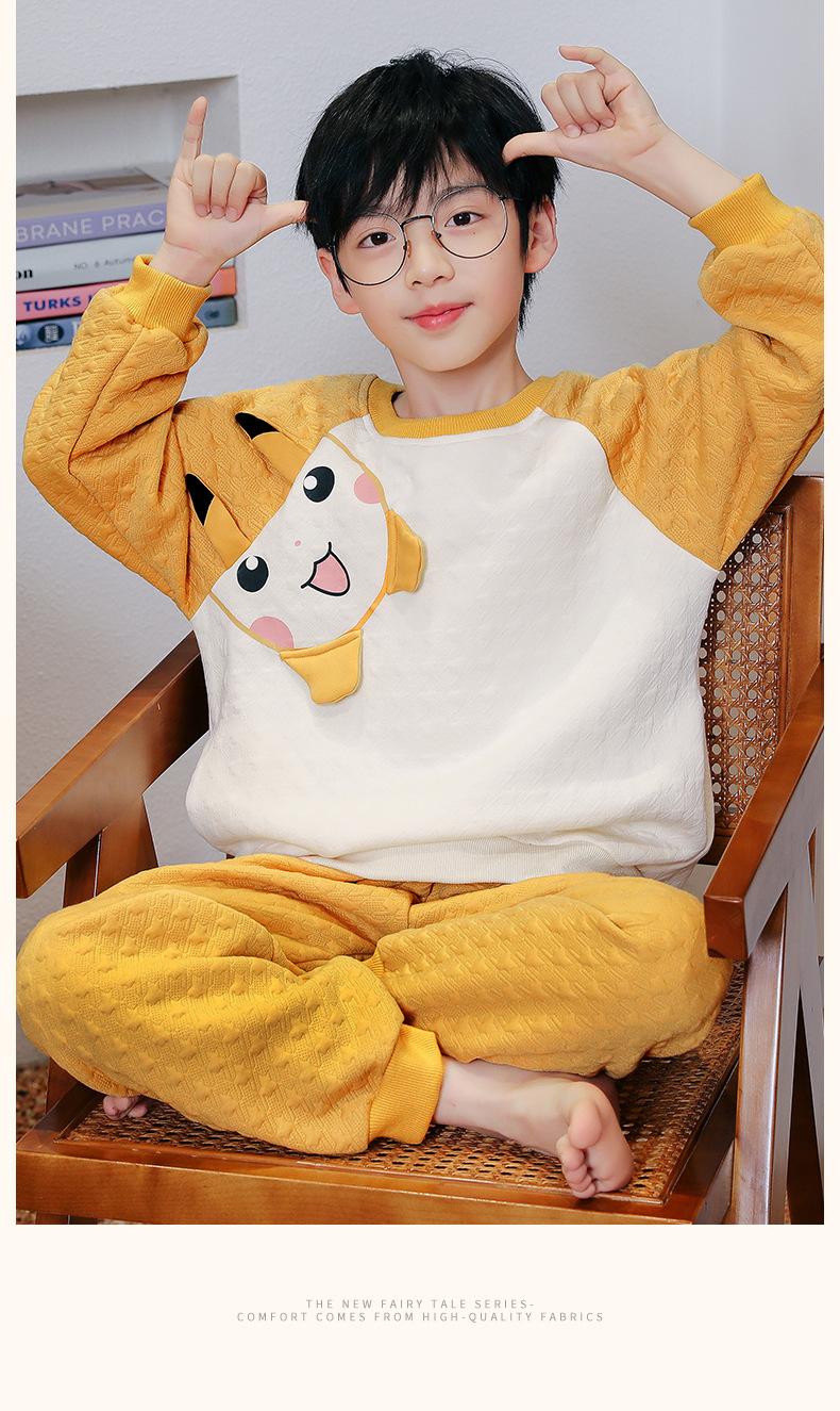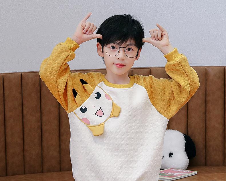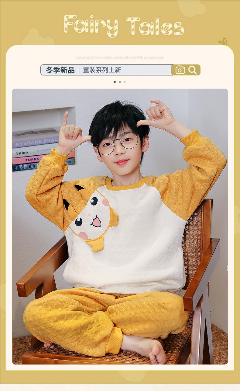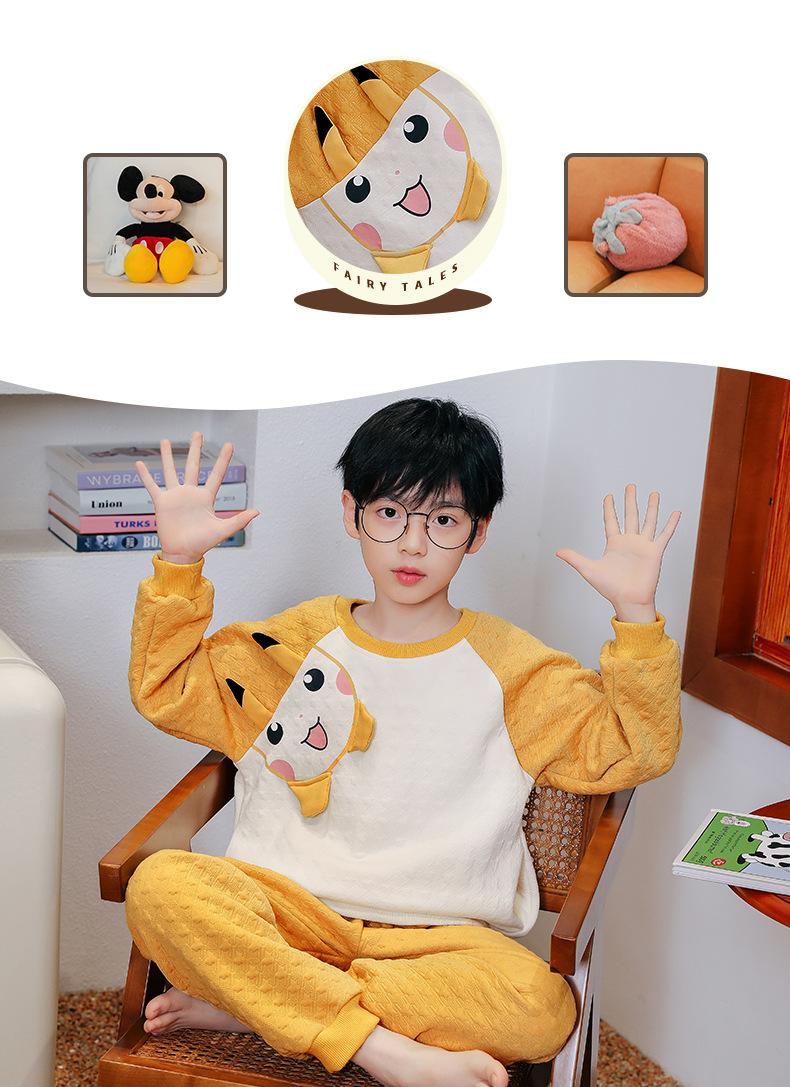 Outono e inverno infantil algodão camada de ar meninos pijamas terno sanduíche engrossado casual desenho animado pullover meninos homewear
