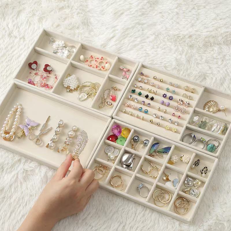 [flanela quatro peças] bandeja de joias caixa de armazenamento gaveta compartimento brincos brincos anel pulseira expositor