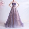Vestido de Gala de Formatura 2026 Novo Sexy Sem Alças Roxo Lantejoula Céu Estrelado Vestido Casamento Noiva Vestido para Performance de Exame de Arte
