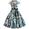 Real shot spot novo vintage impresso manga curta Hepburn estilo lace-up grande vestido de balanço