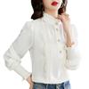 Blusa de Chiffon Branco para Mulheres 2022 Nova Gola Alta Babados Top de Manga Comprida com um Design Elegante e Único para um Estilo de Trabalho Sofisticado e Casual
