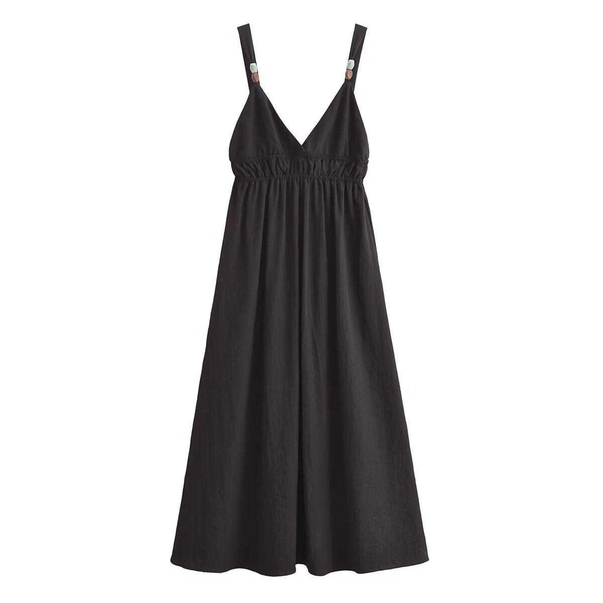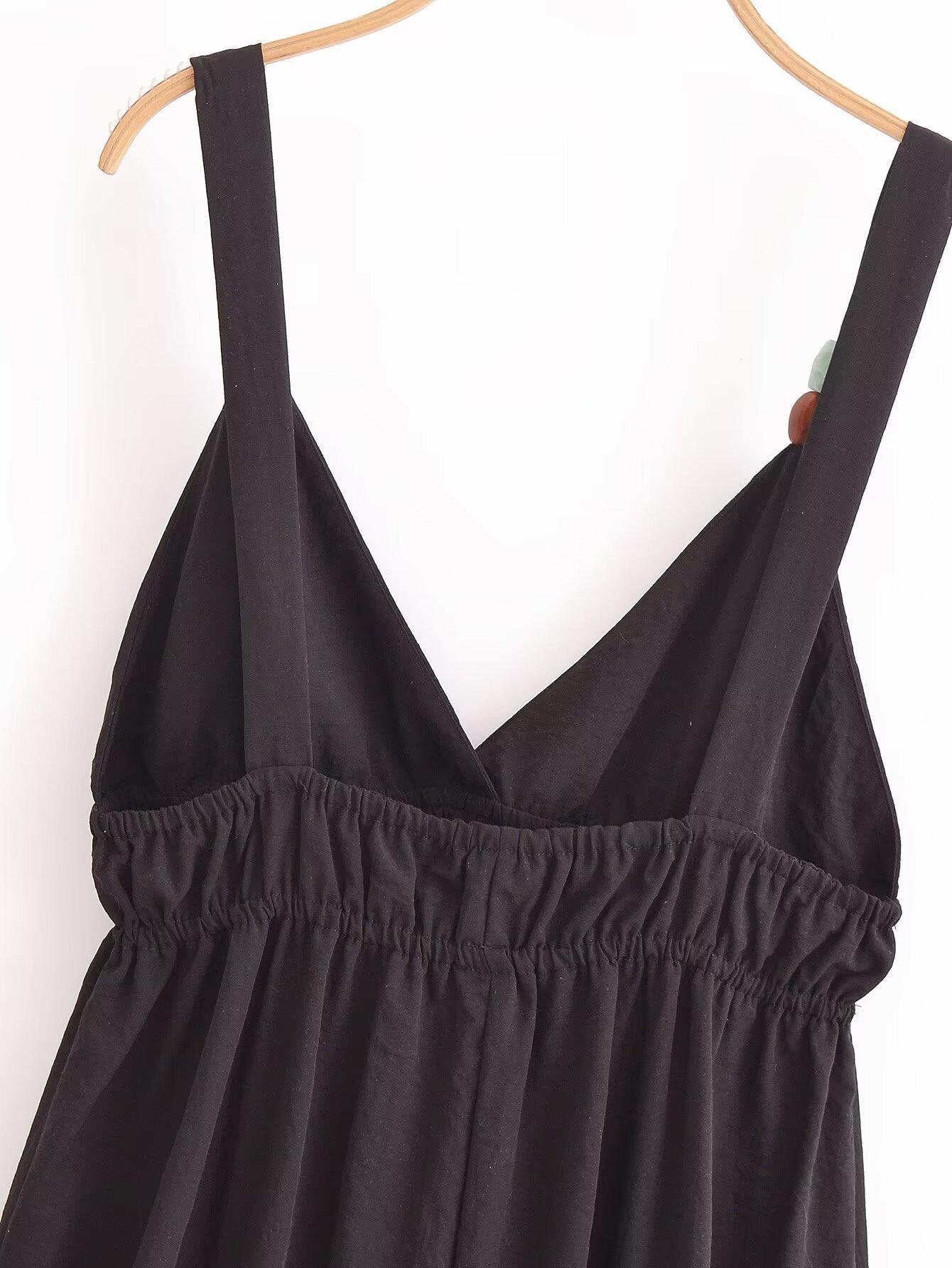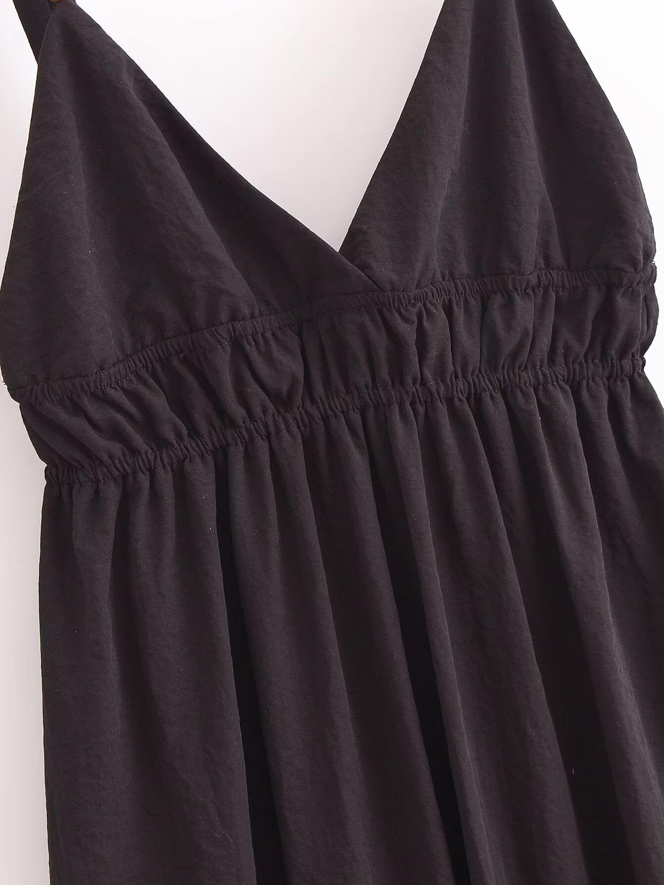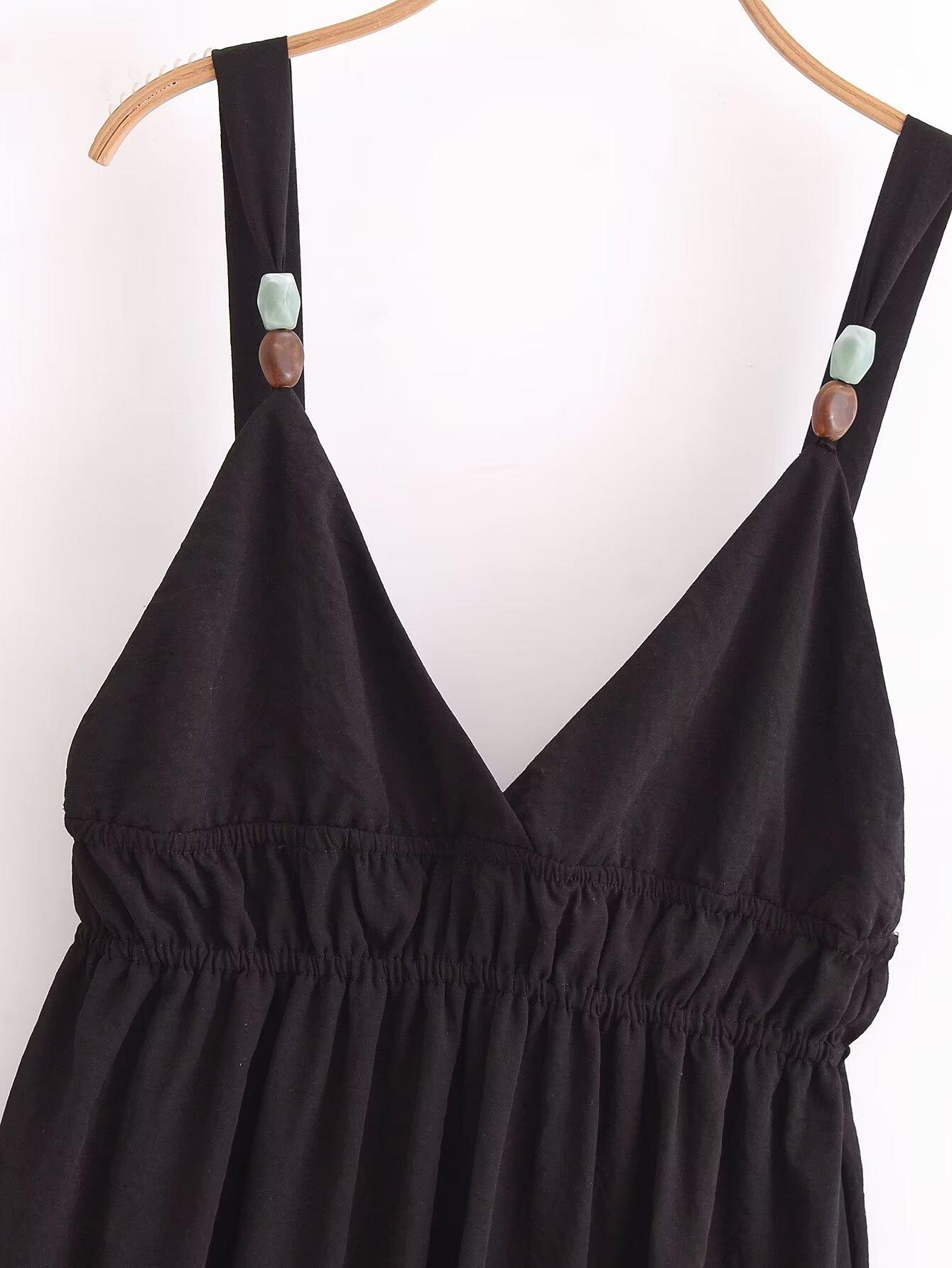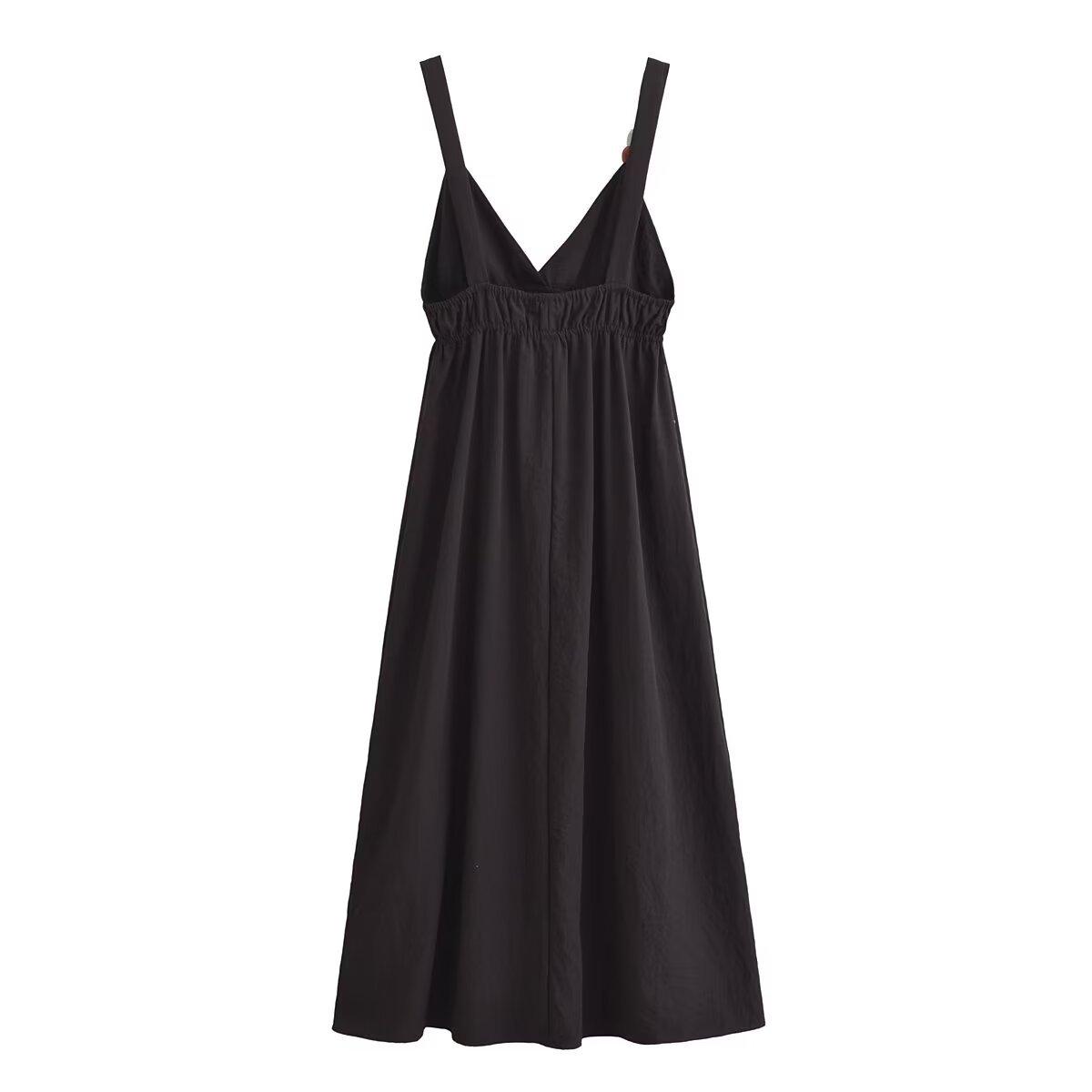 2024 Verão Novo Europeu e Americano Cross-border Feminino Desgaste Preto V-neck Moda Sling Beaded e Incrustado Sling Dress