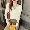 Cardigan de malha feminino primavera e outono casaco fino suéter com decote em V 2024 novo suéter de malha slim fit de manga comprida início do outono