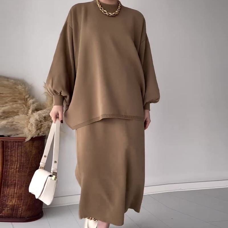 Outono 2023 Novo terno de saia preguiçosa casual de cor sólida solta de comércio exterior da Amazon europeia e americana