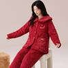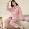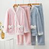 Pijama macio feminino outono e inverno meio-lado veludo cardigan quente casa usar manga longa inverno estilo chanel terno engrossado