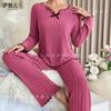 Pijama de outono/inverno de cor sólida europeia e americana transfronteiriça, conjunto de duas peças com laço, roupas femininas para casa, calças de manga comprida