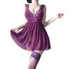 Camisola Roxa Europeia e Americana Transfronteiriça Comércio Exterior Sexy Decote V Profundo Renda Transparente de Malha Fina Sem Costas com Fenda