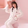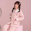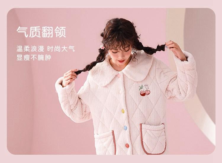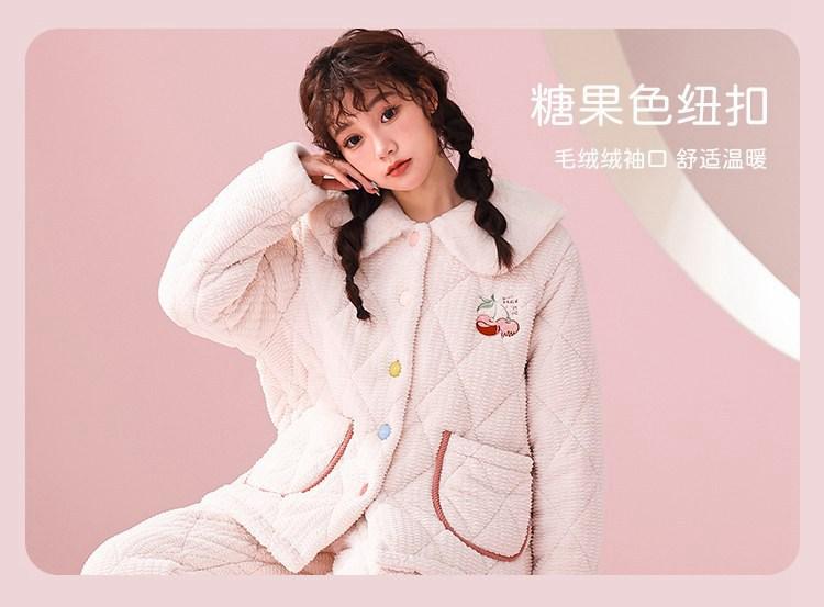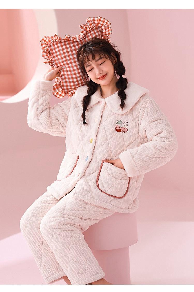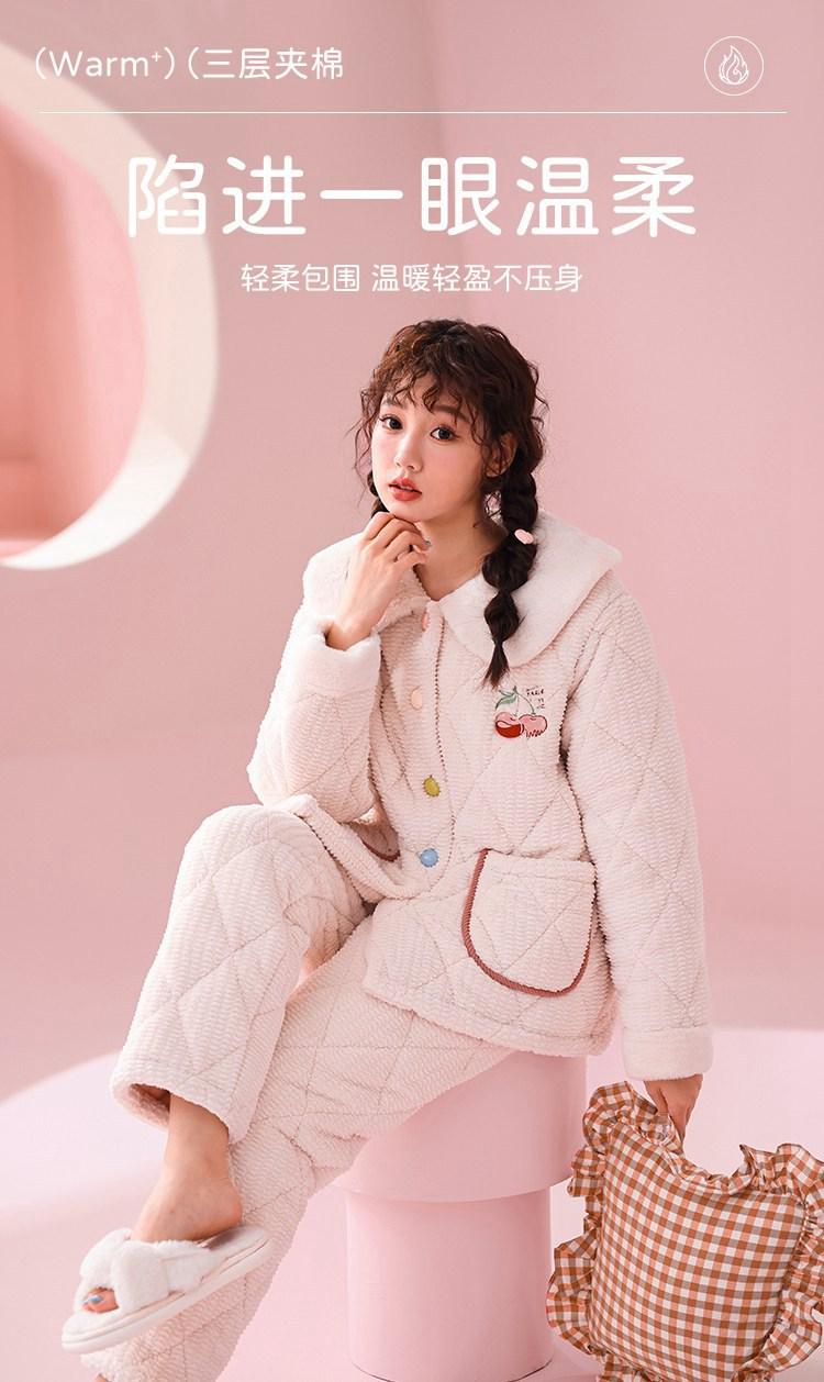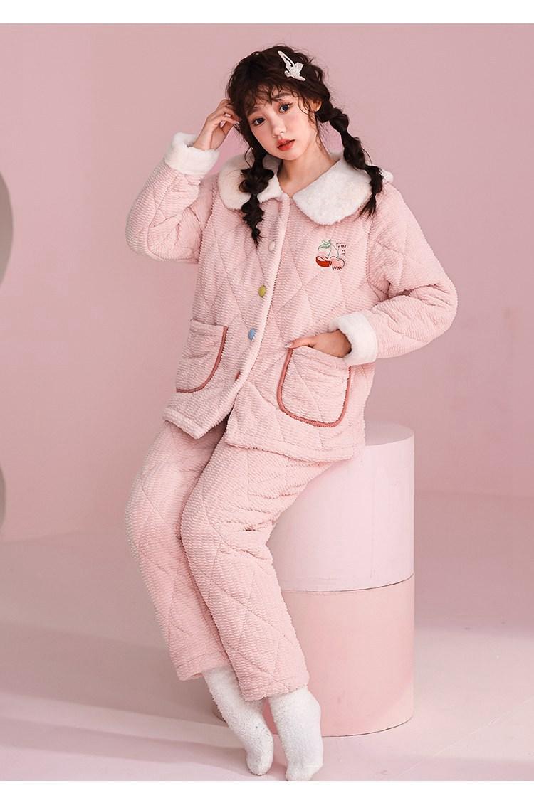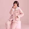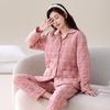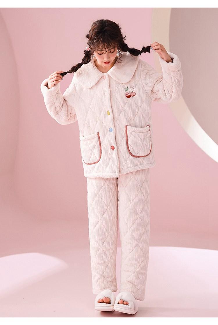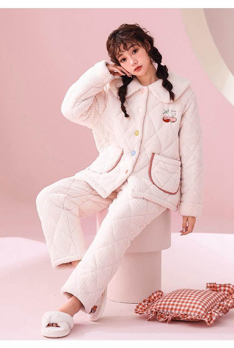 [três camadas de algodão] inverno novos pijamas femininos usam algodão acolchoado coral fleece roupas quentes para casa terno