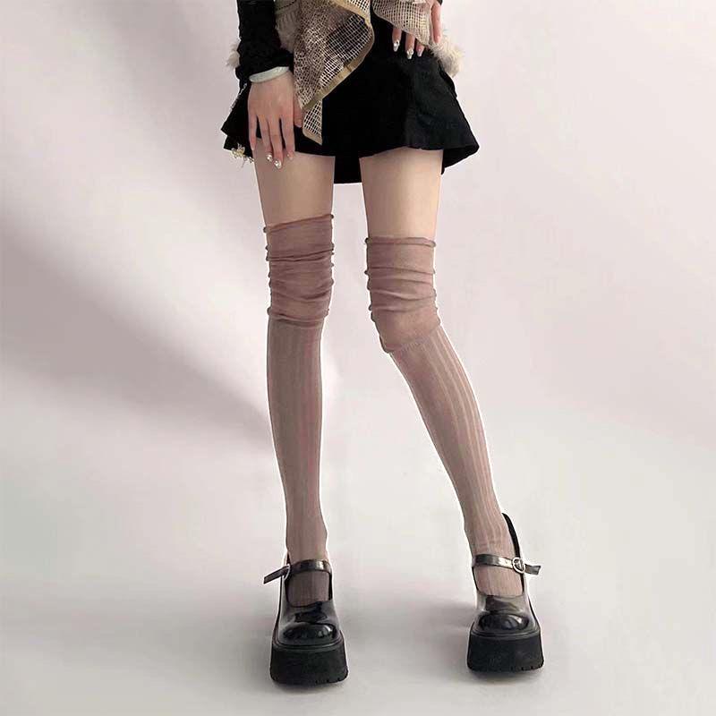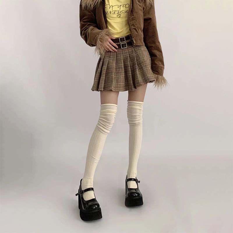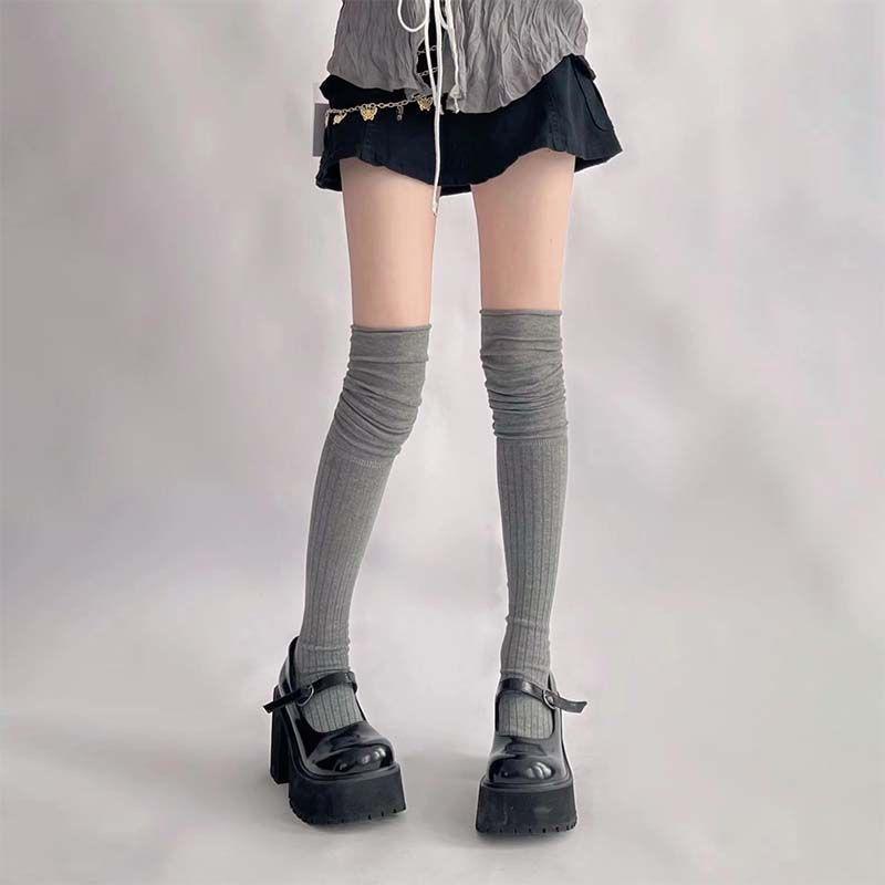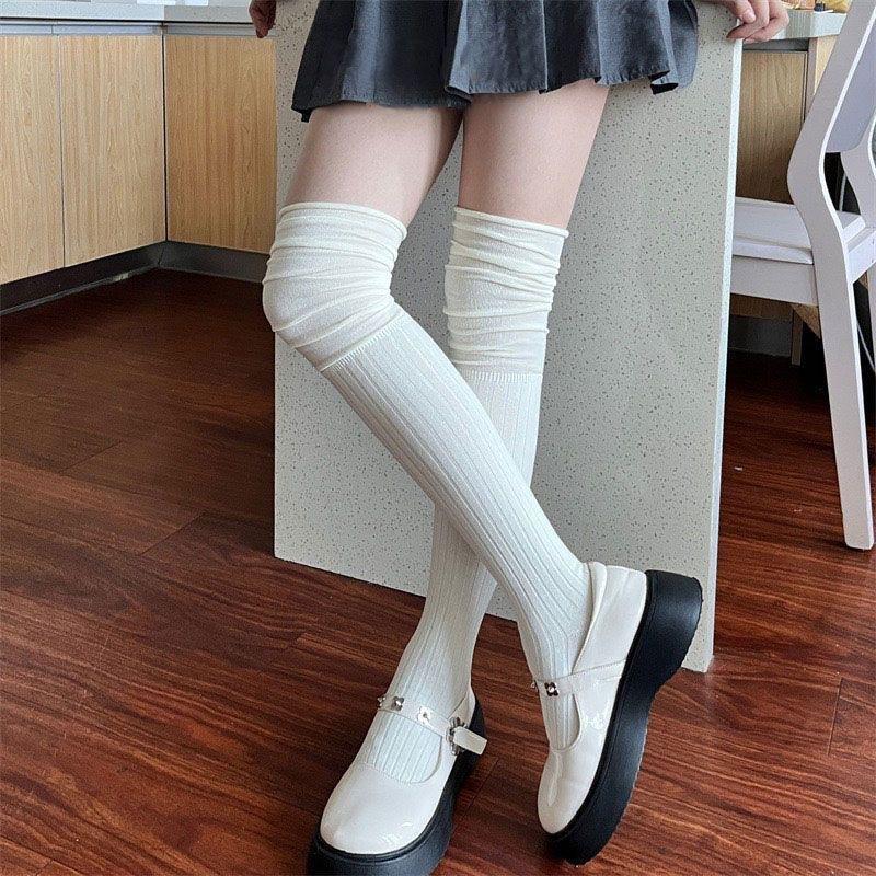 Botas longas acima do joelho meias primavera e verão meias femininas costura cor sólida meias coxa meias empilhadas outono e inverno all-match ins meias da moda mulheres