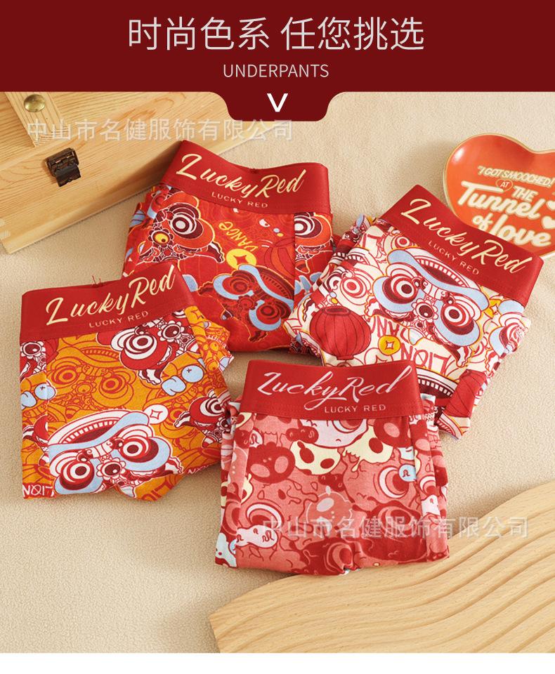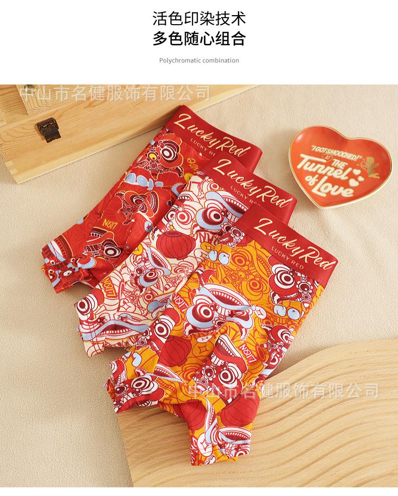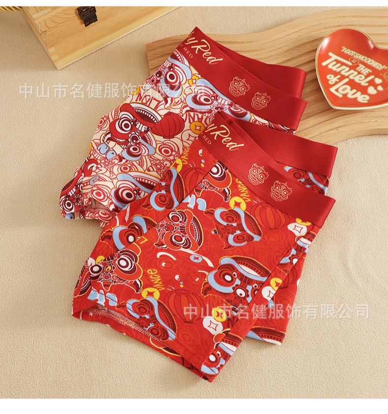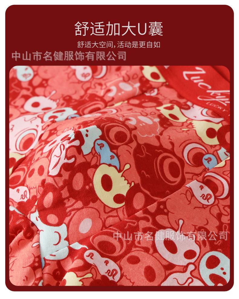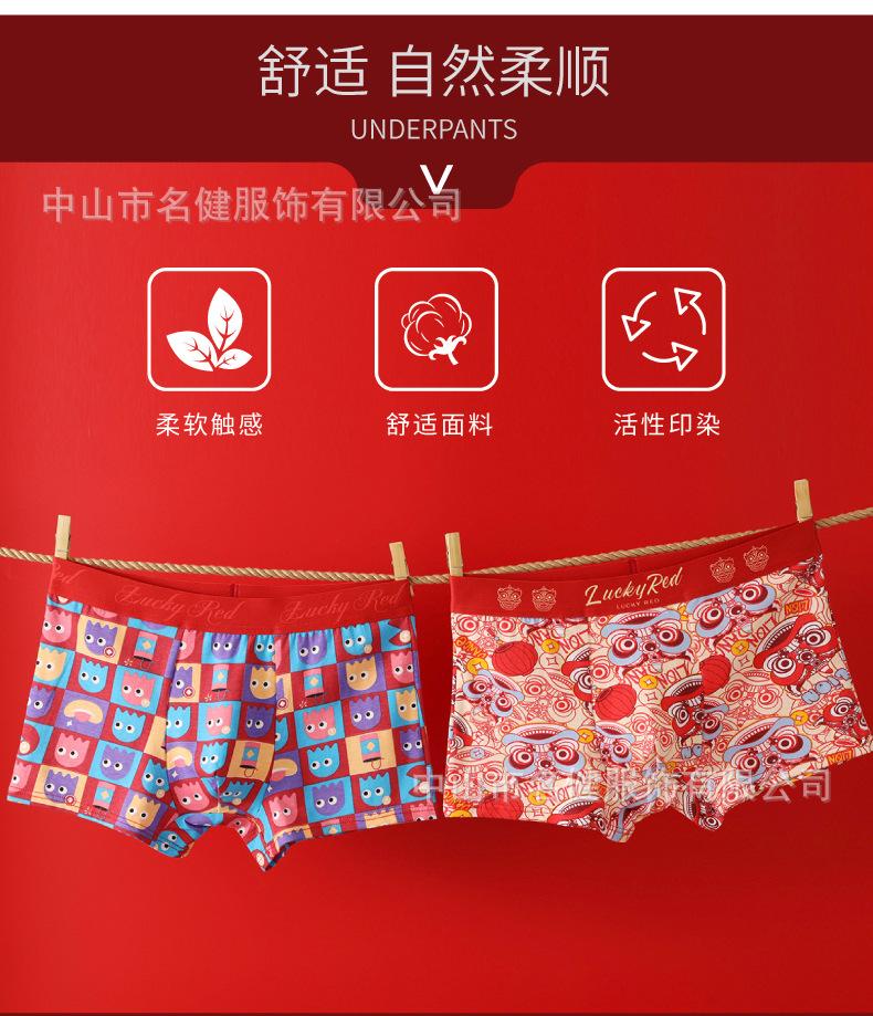 Nova roupa íntima masculina vermelha estampada algodão puro Benmingnian roupa íntima masculina vermelha moda respirável juventude boxers cabeça