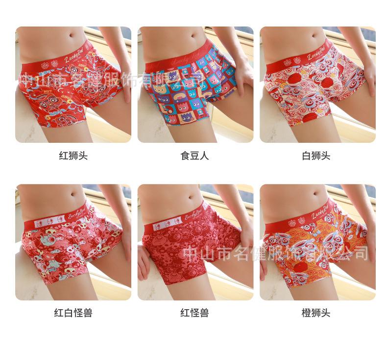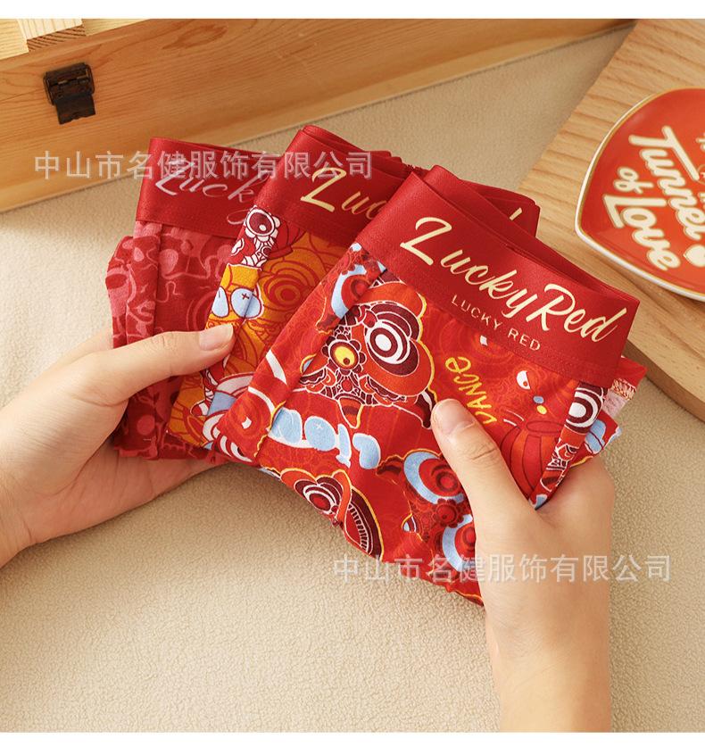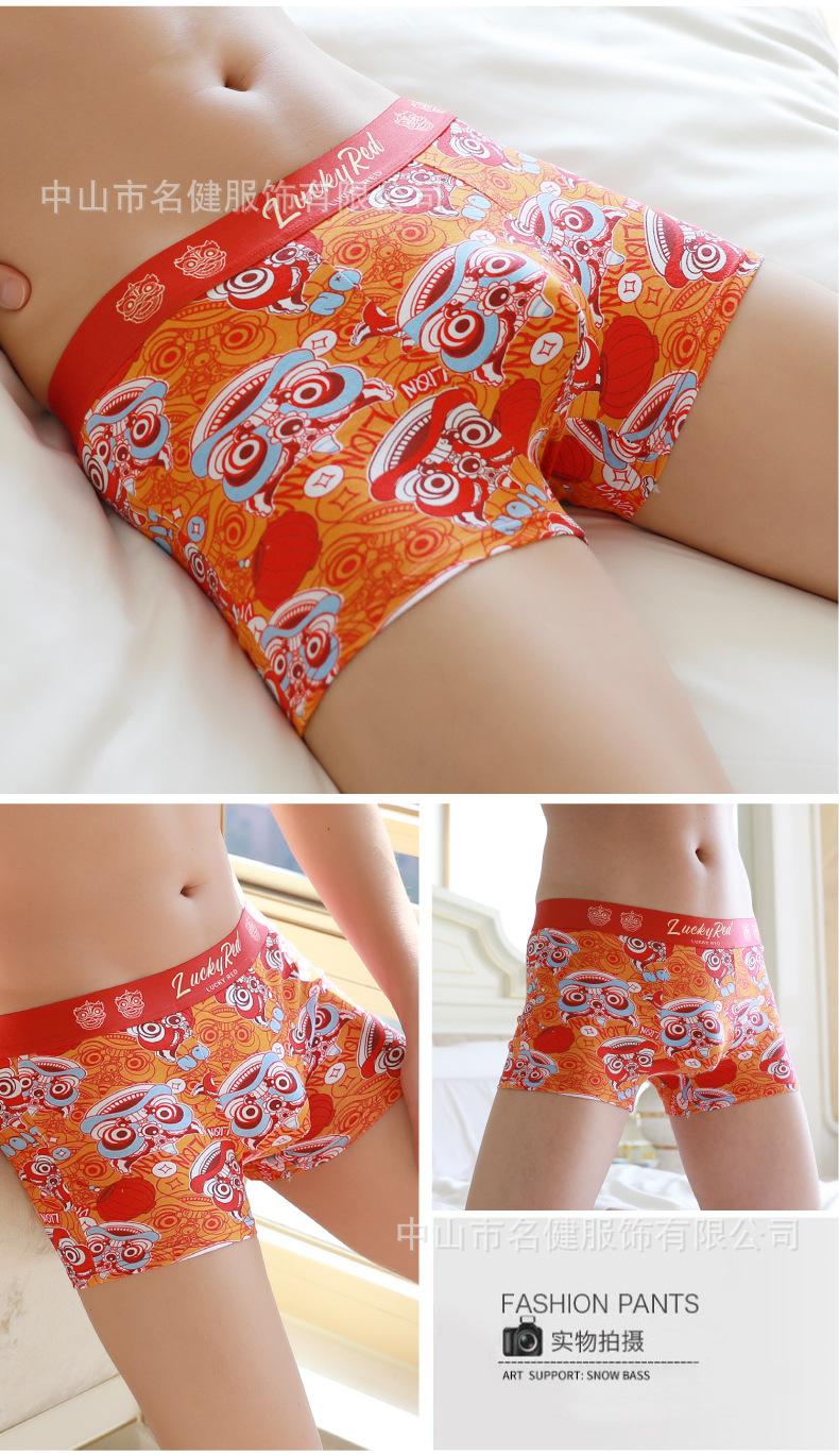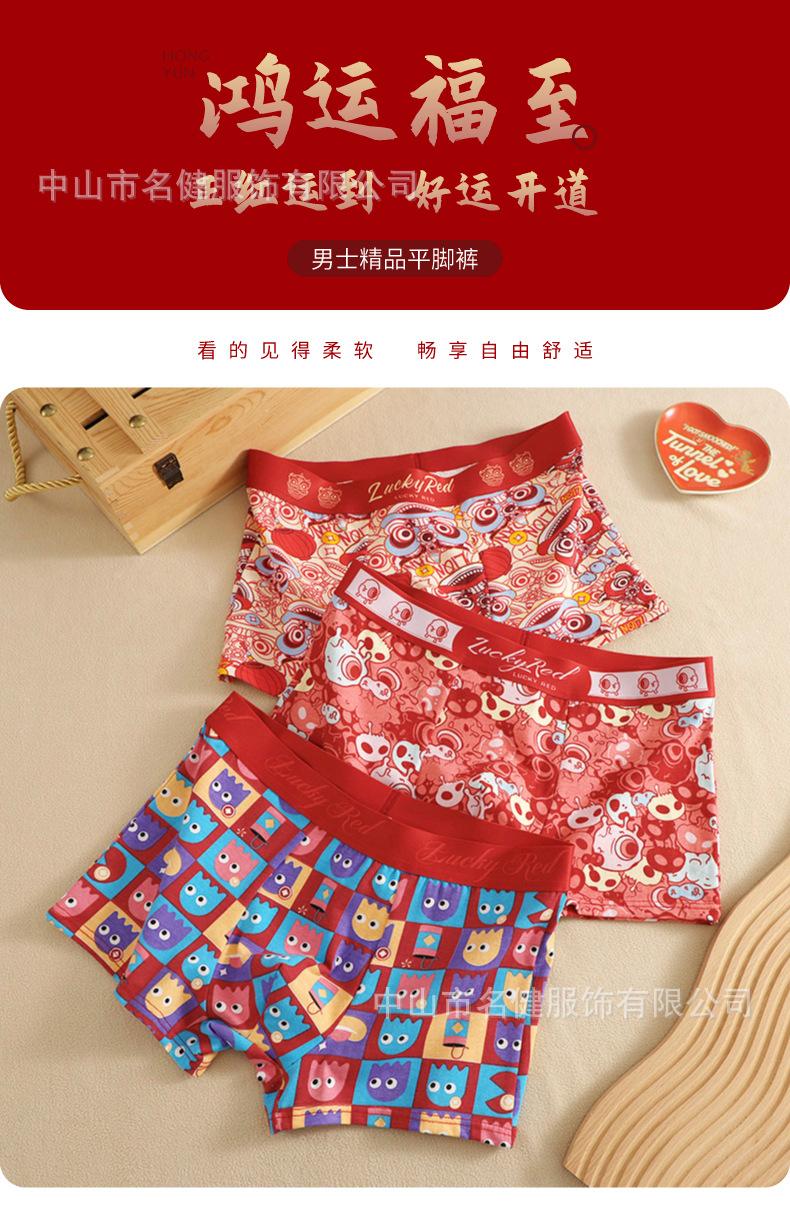 Nova roupa íntima masculina vermelha estampada algodão puro Benmingnian roupa íntima masculina vermelha moda respirável juventude boxers cabeça