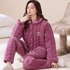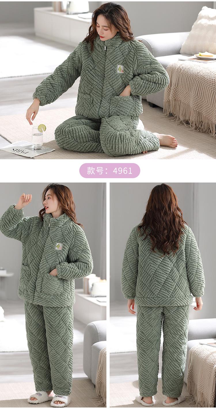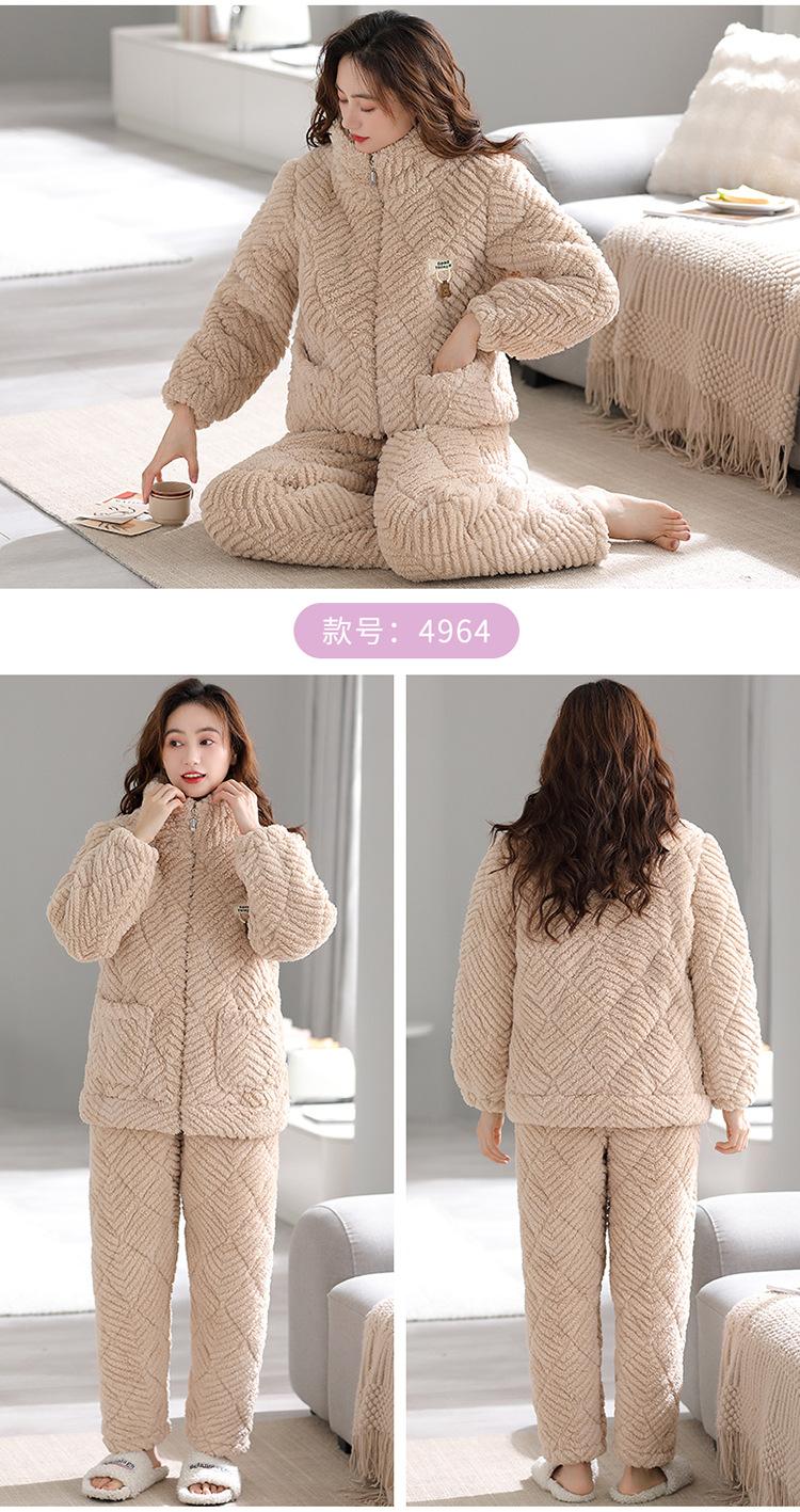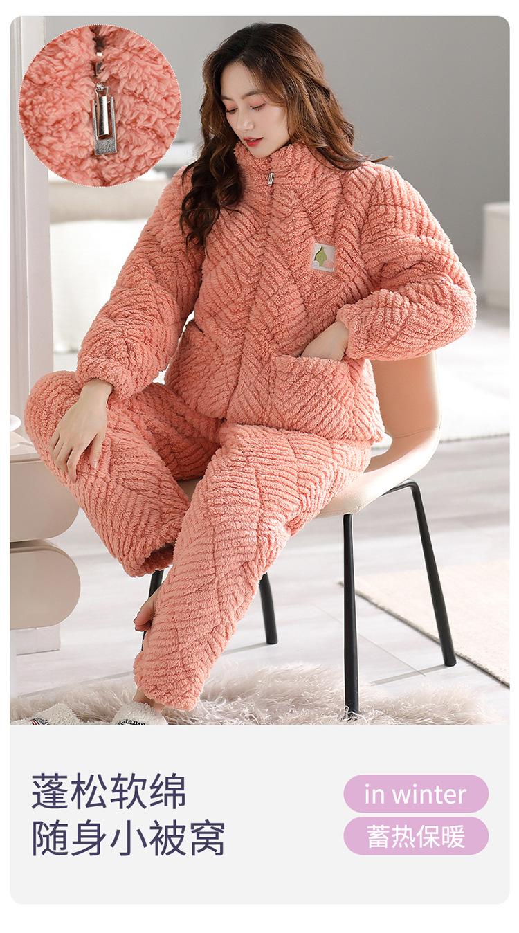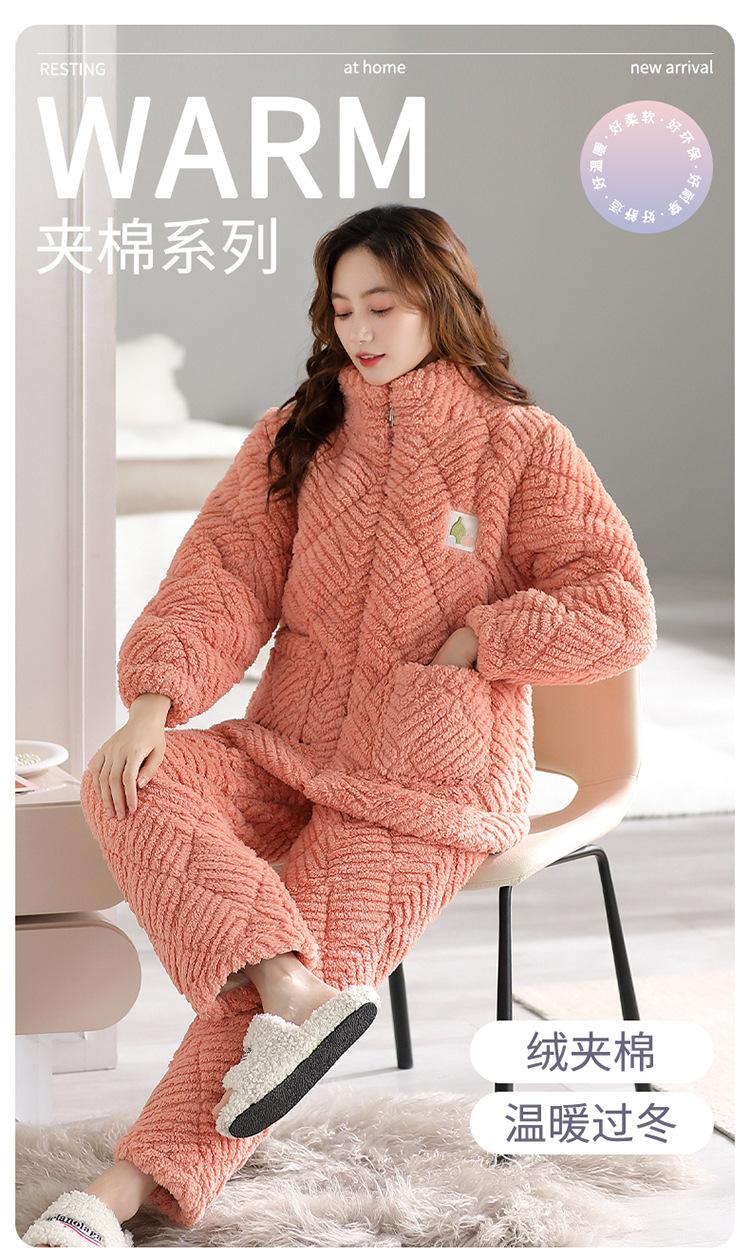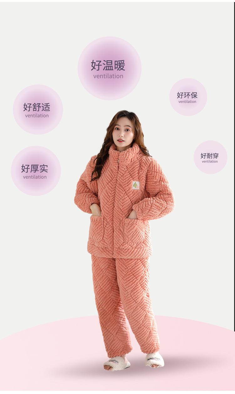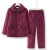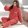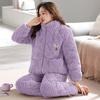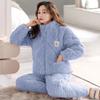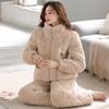 Pijama de lã coral feminino inverno forrado de lã espessado flanela três camadas acolchoado meia-idade mãe zíper roupas para casa terno