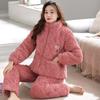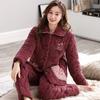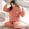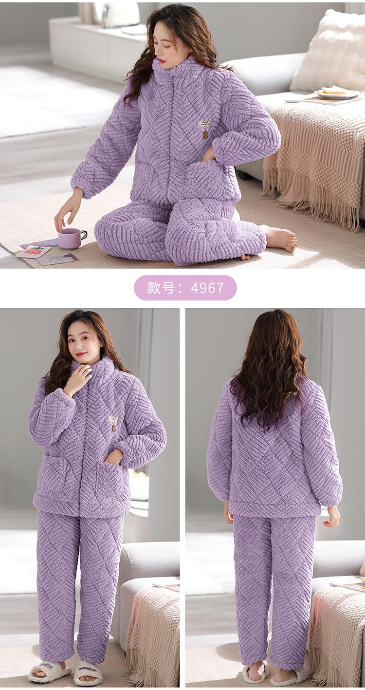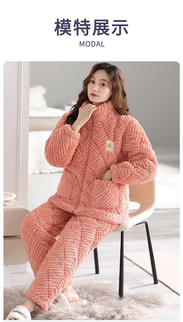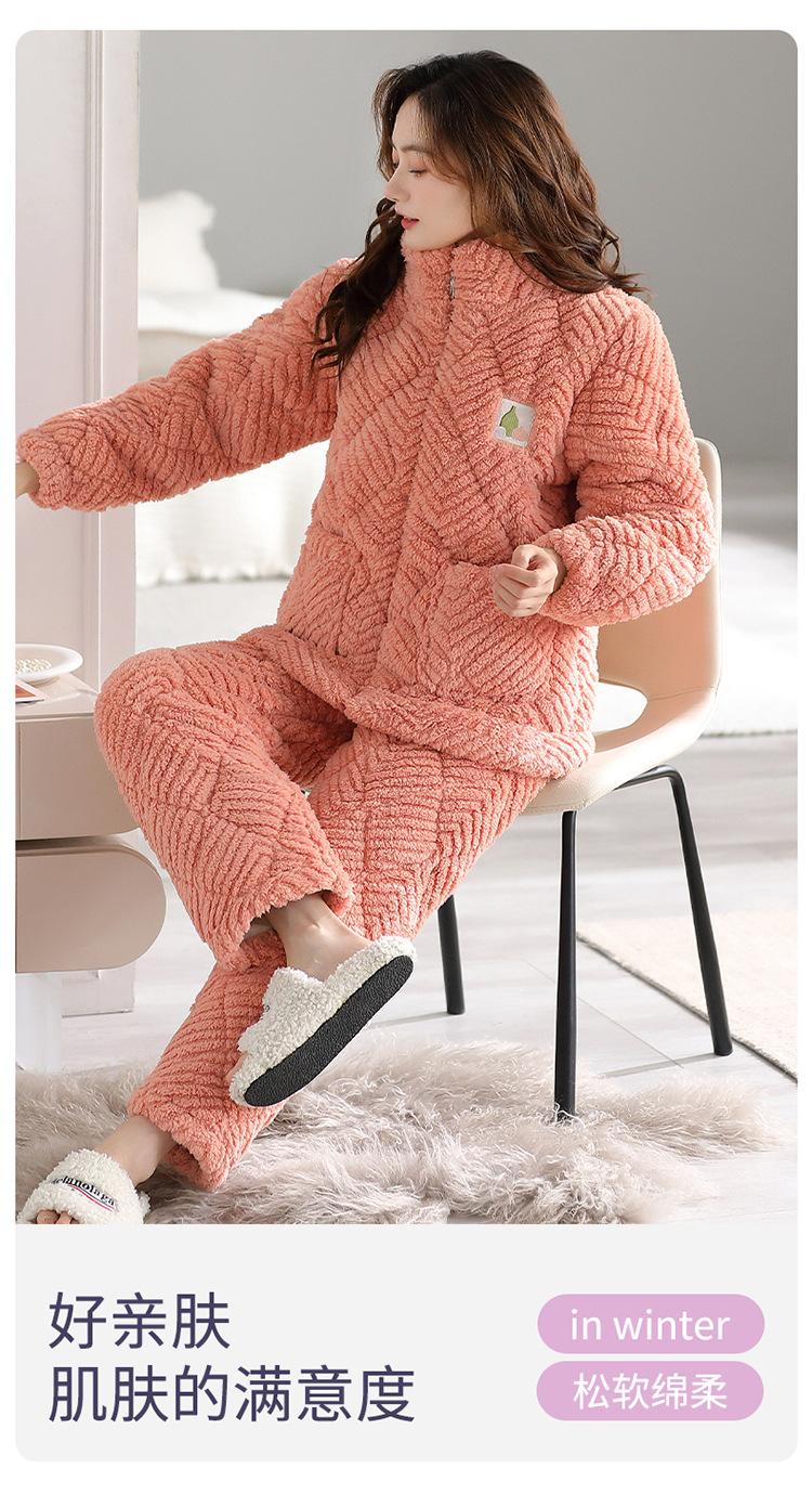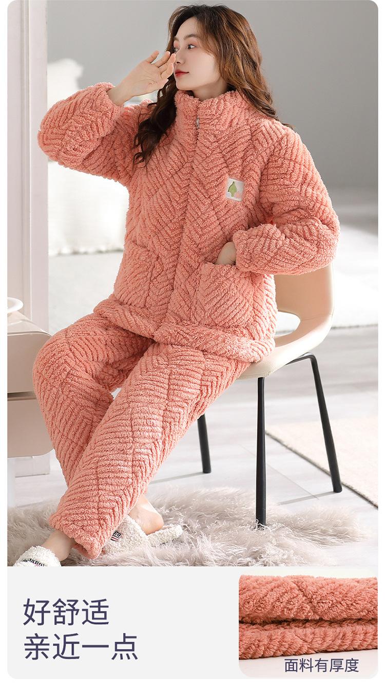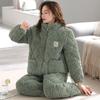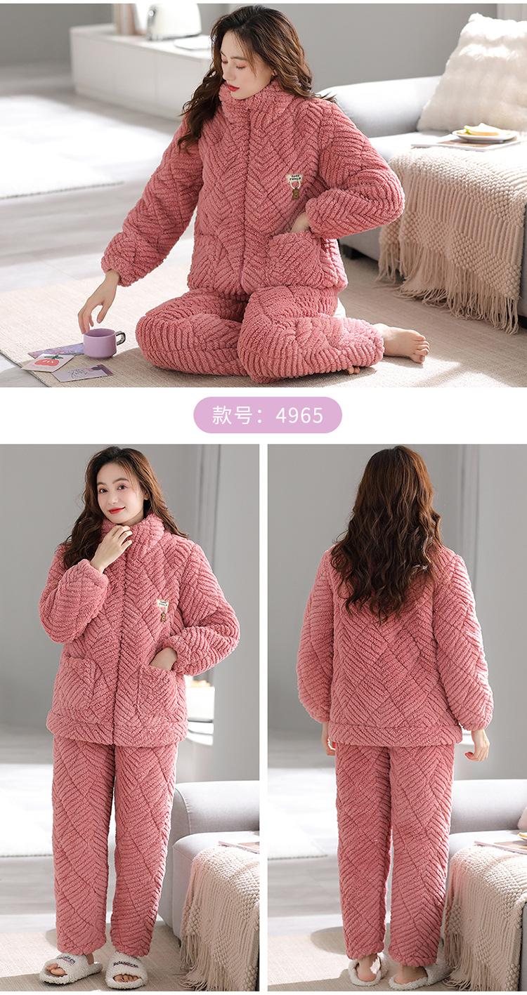Pijama de lã coral feminino inverno forrado de lã espessado flanela três camadas acolchoado meia-idade mãe zíper roupas para casa terno