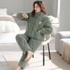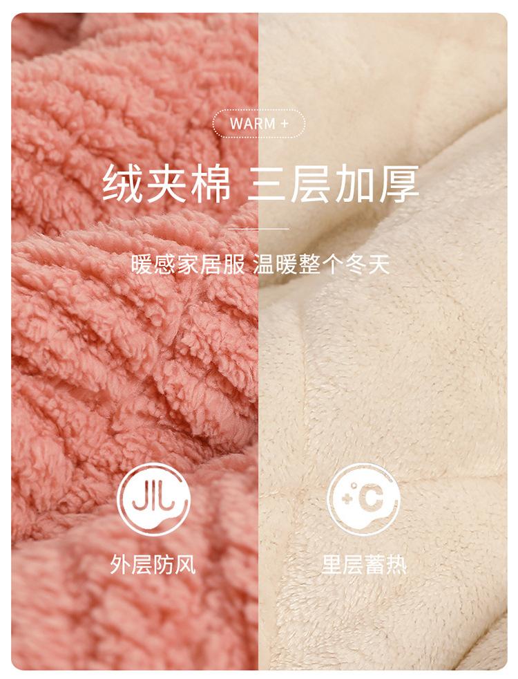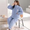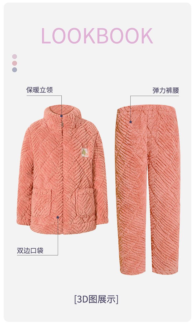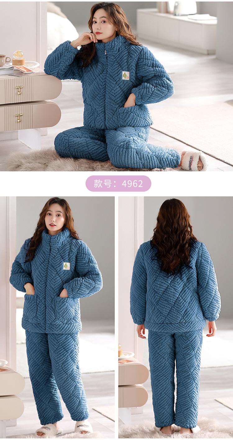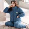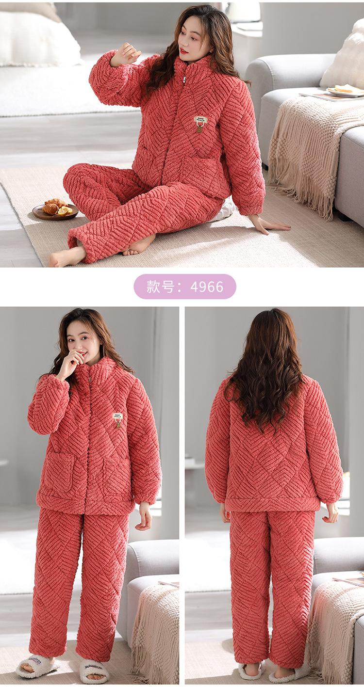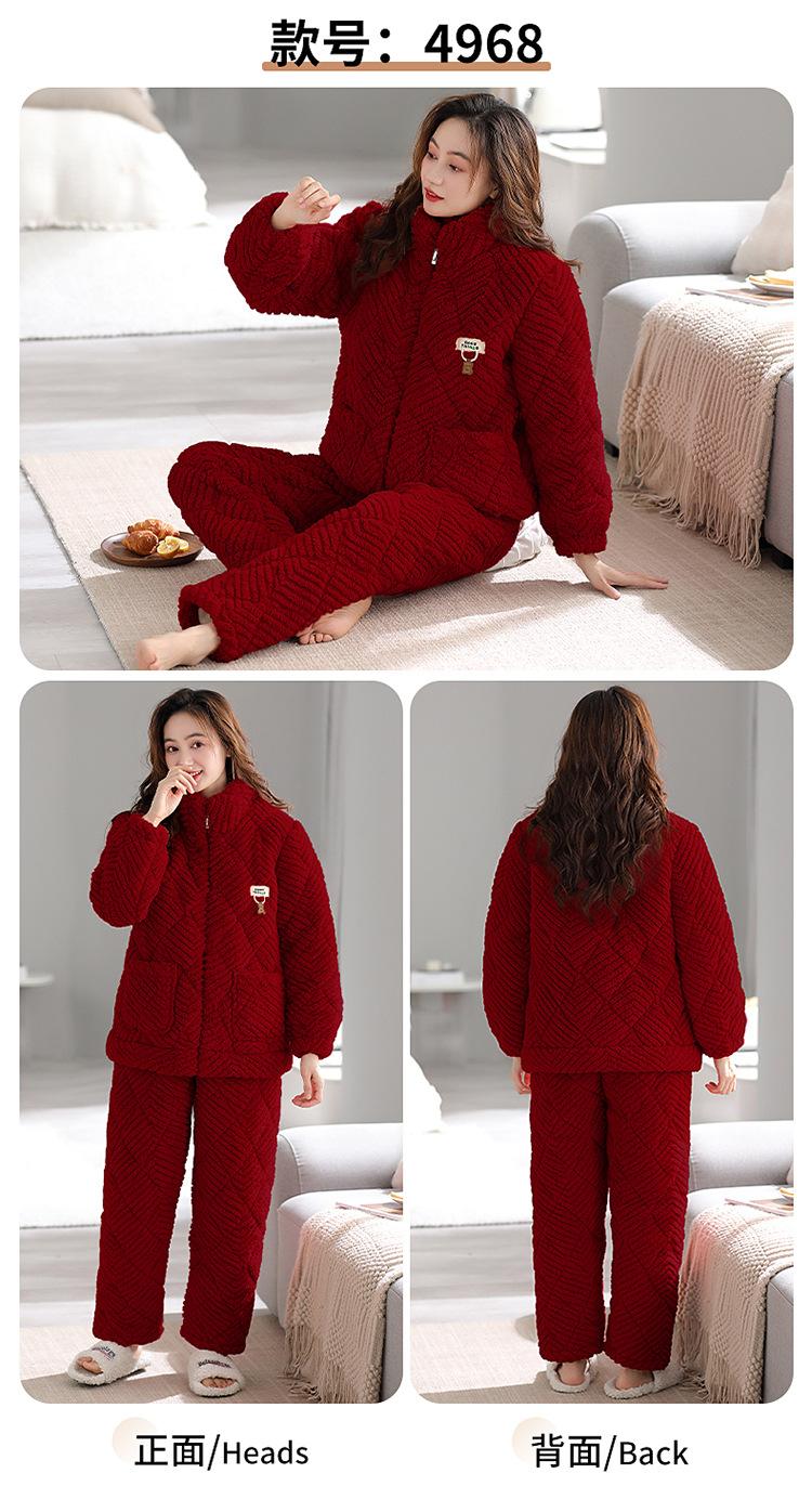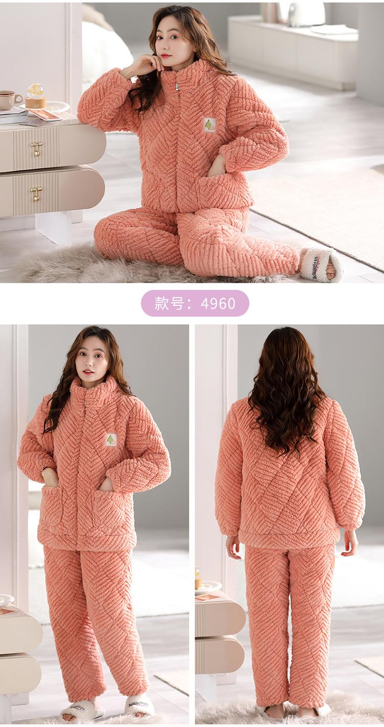 Pijama de lã coral feminino inverno forrado de lã espessado flanela três camadas acolchoado meia-idade mãe zíper roupas para casa terno