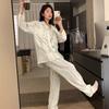 Pijamas Femininos Primavera e Outono com Almofada no Peito Calças de Manga Longa Terno Estilo Nacional Início do Outono Moda Doce Cardigan Roupas para Casa