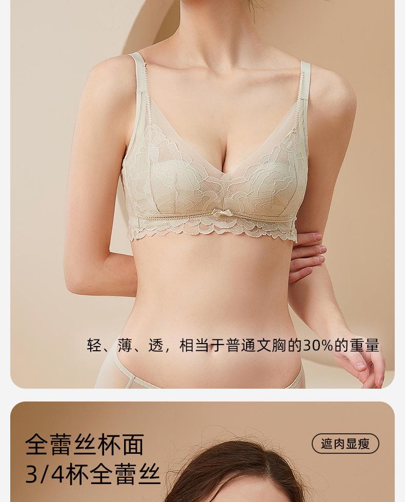 Sem anel de aço renda sexy roupa íntima senhoras fino cristal copo sutiã bonito costas reunidas sutiã entidade atacado